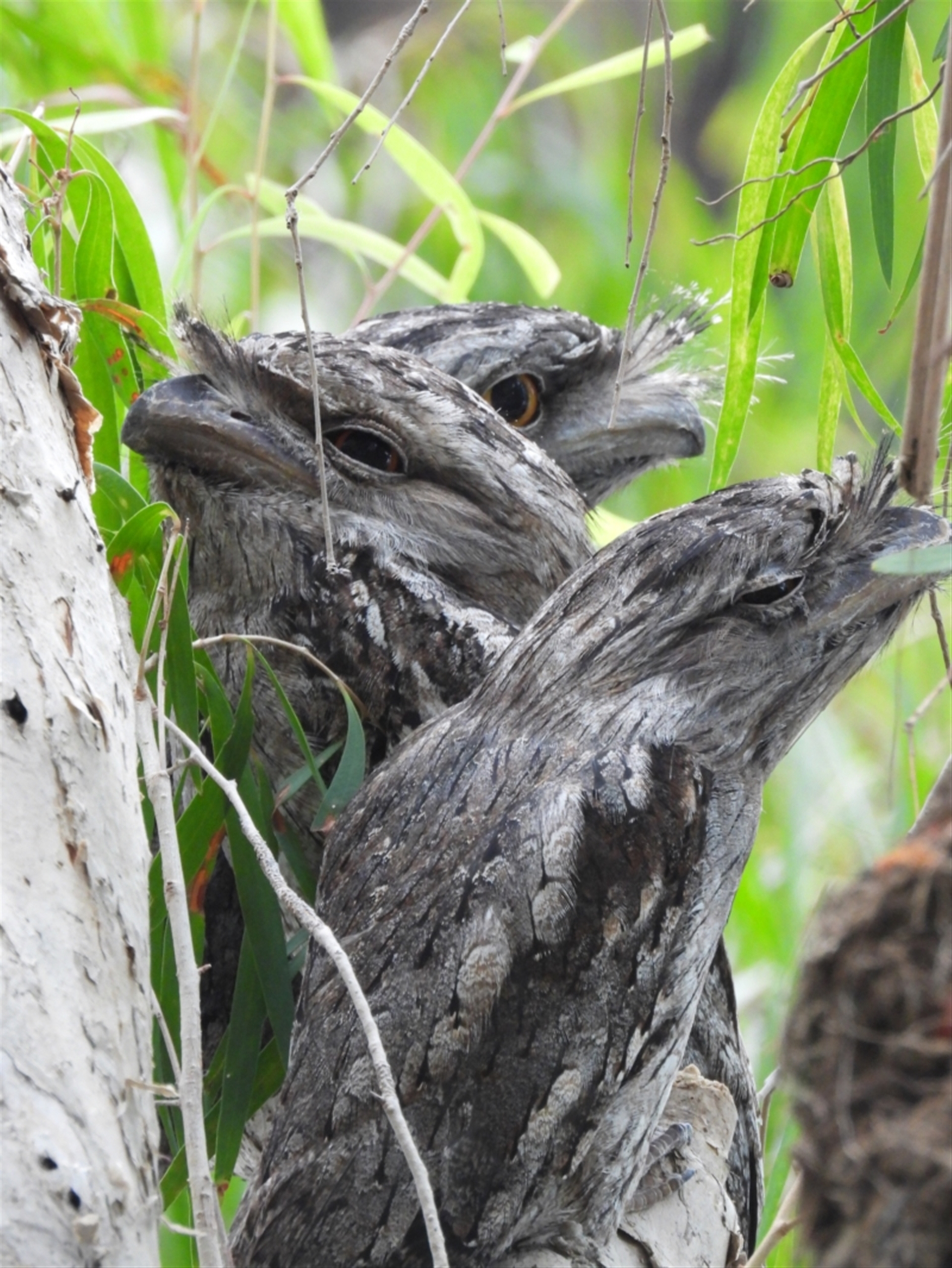 A family of Tawny Frogmouths.
