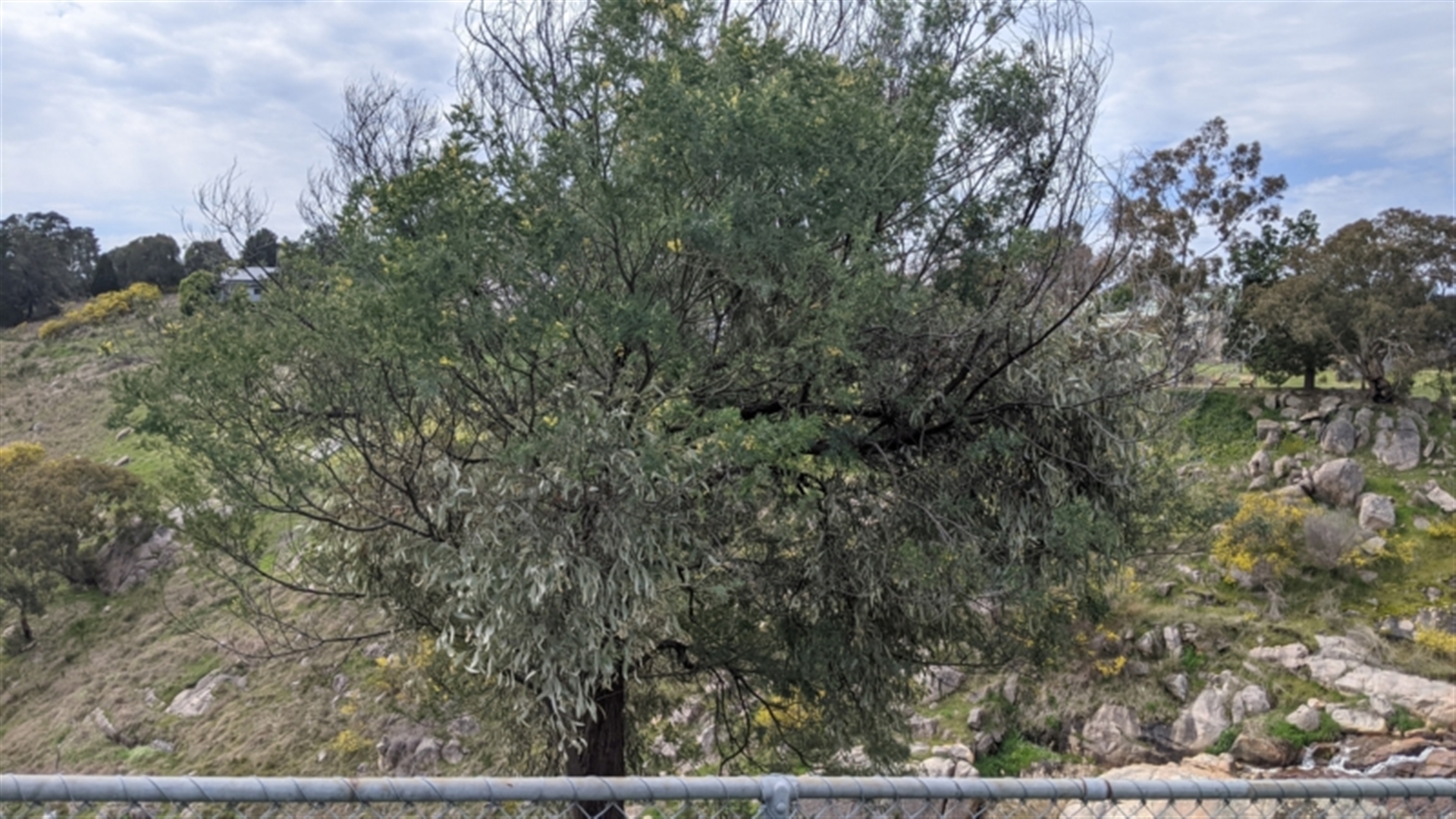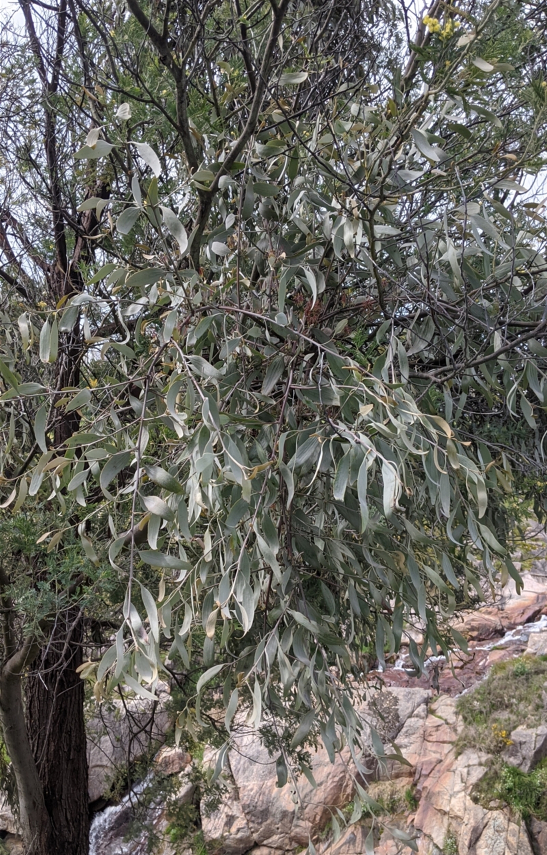 Several silver mistletoes growing in a silver wattle (Acacia dealbata)