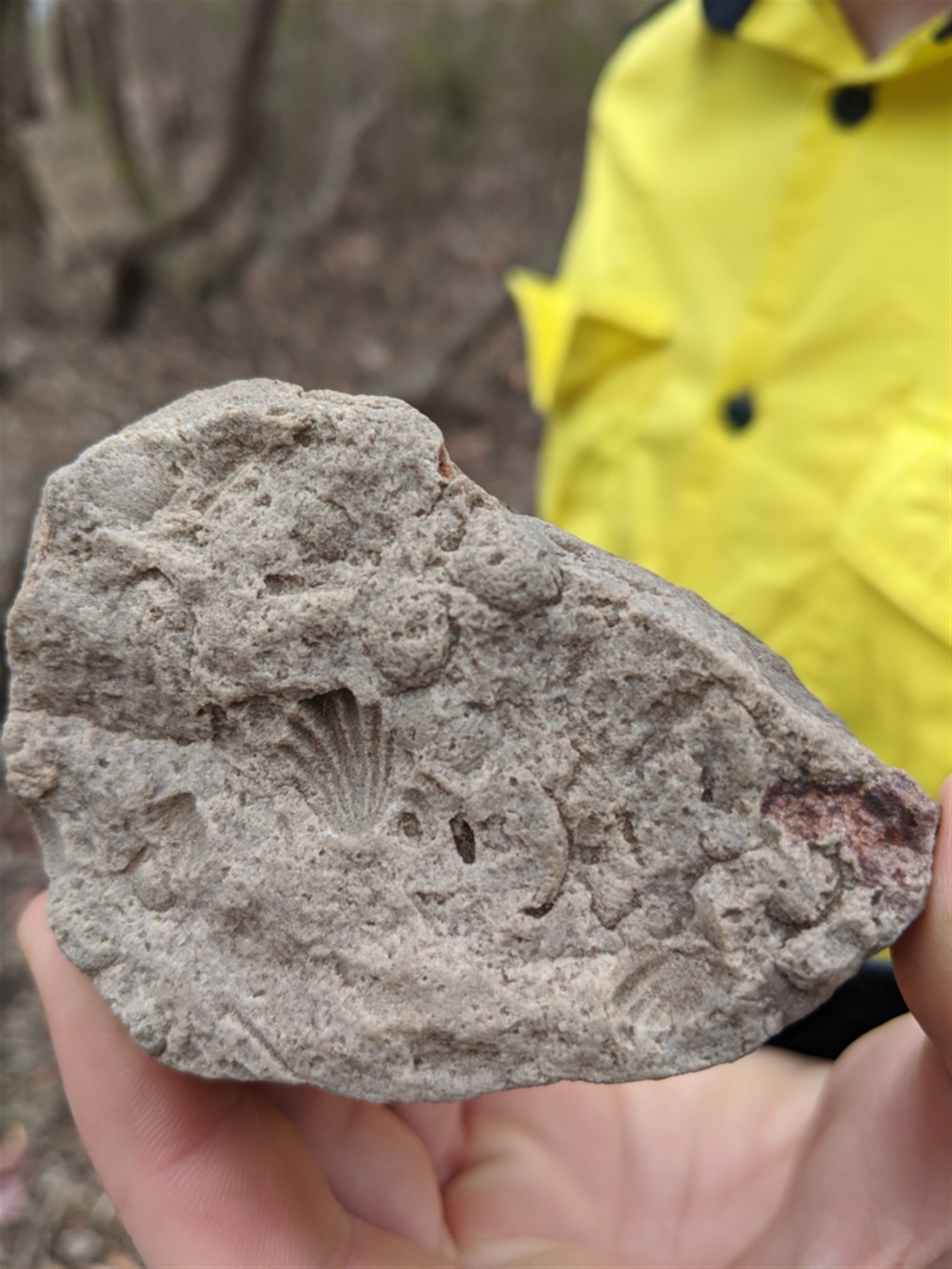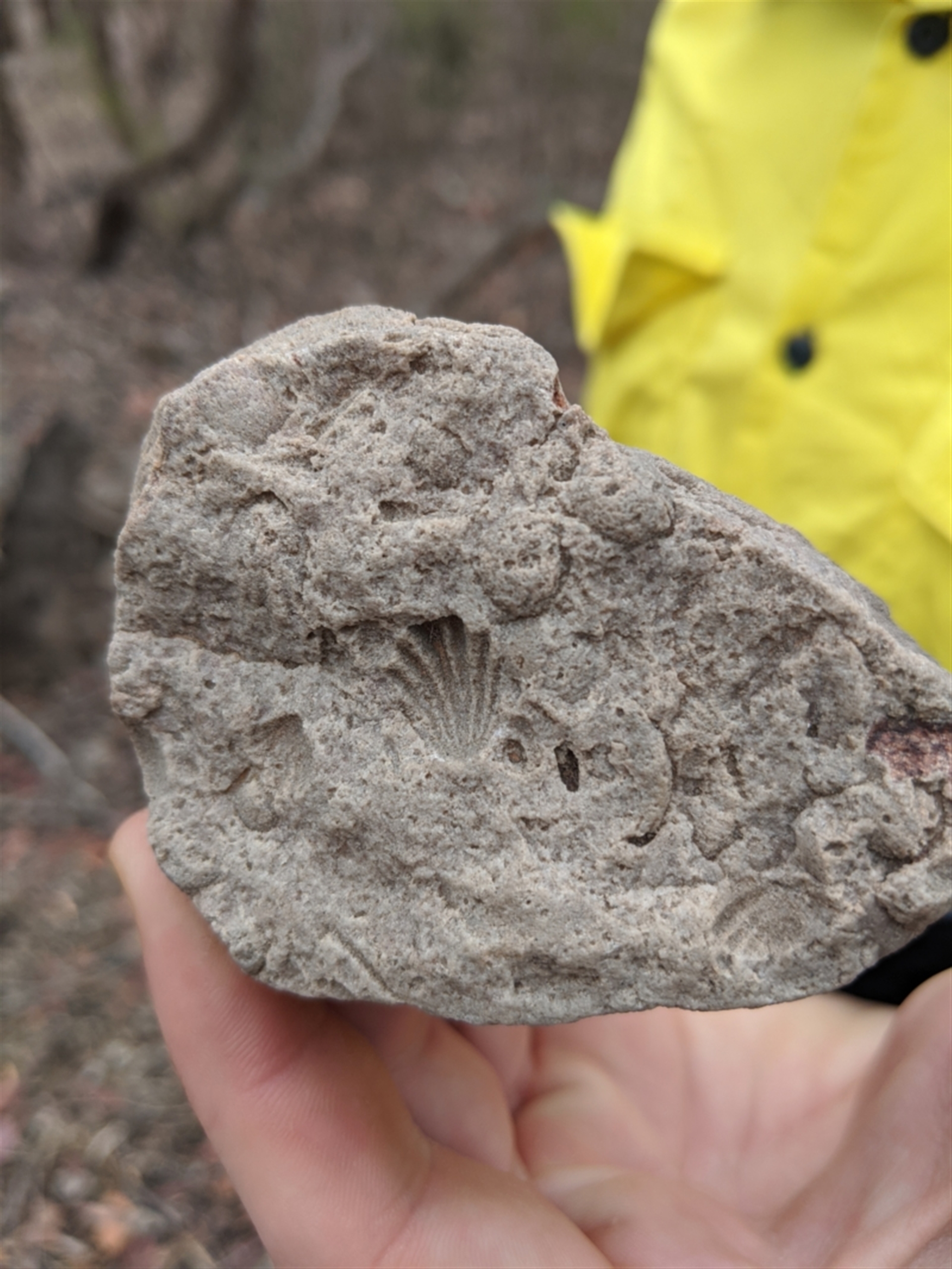 Fossil of a shell, found lying on the forest floor.