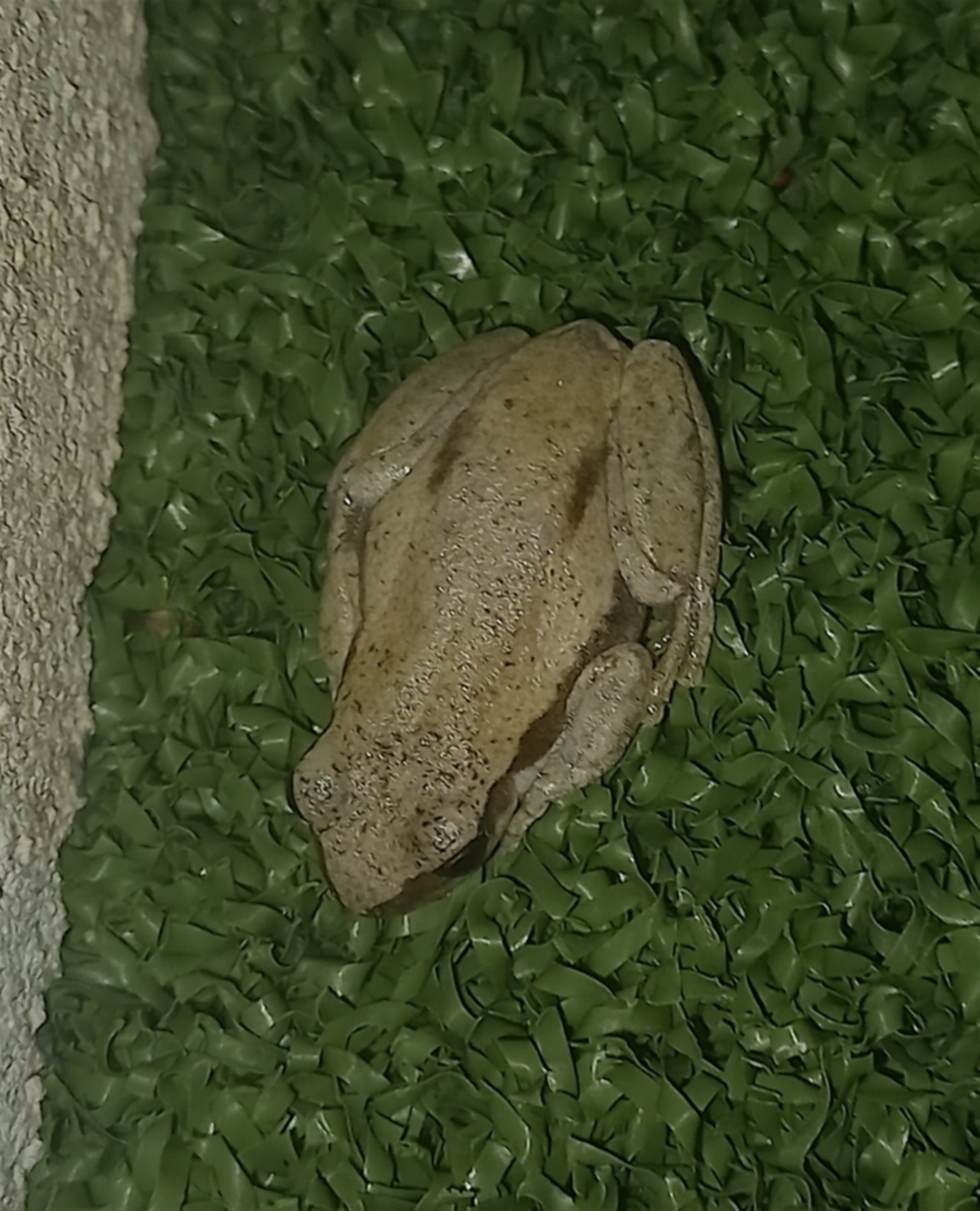 Was next to 3 red tree frogs next to our pond.