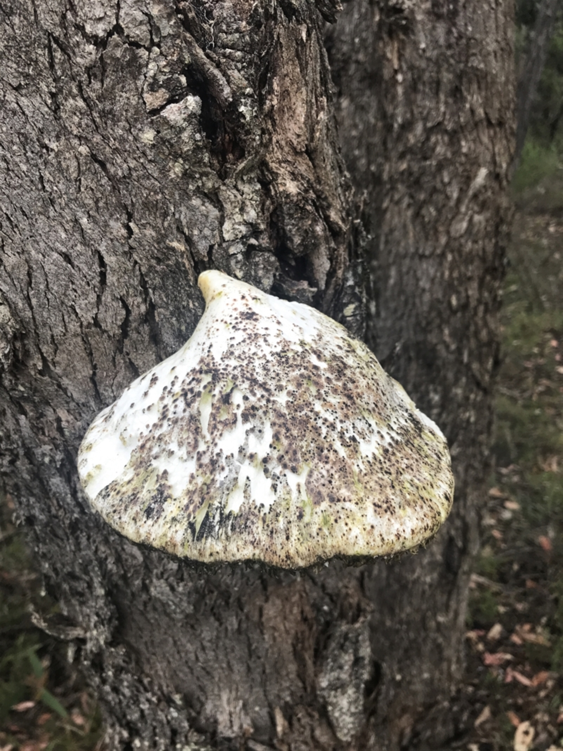 Tapirlord Loddon Mallee NatureMapr Pored or somewhat maze-like on underside [bracket polypores] Shelf-like to hoof-like & usually on wood Fungi Laetiporus portentosusSynonyms
