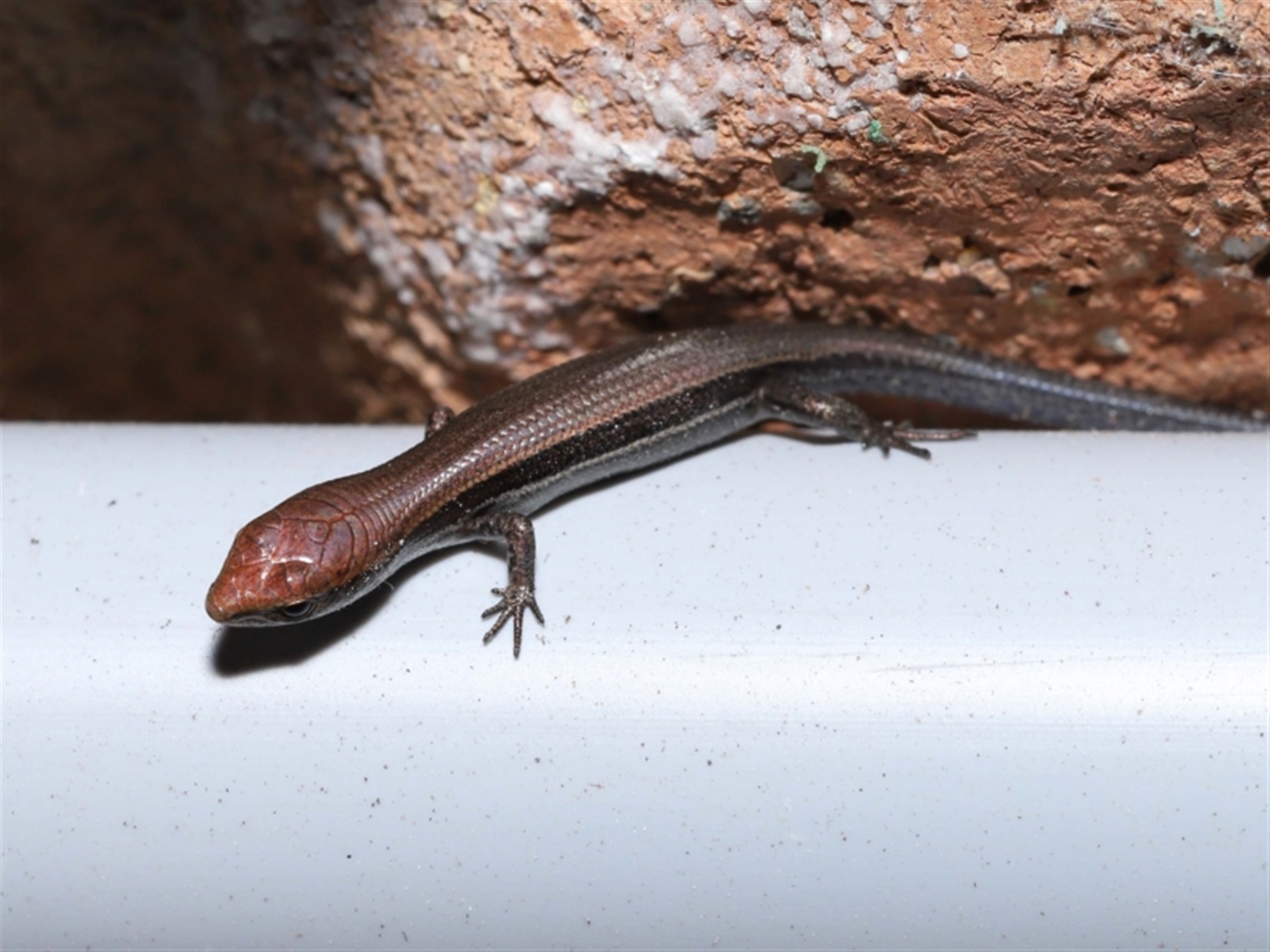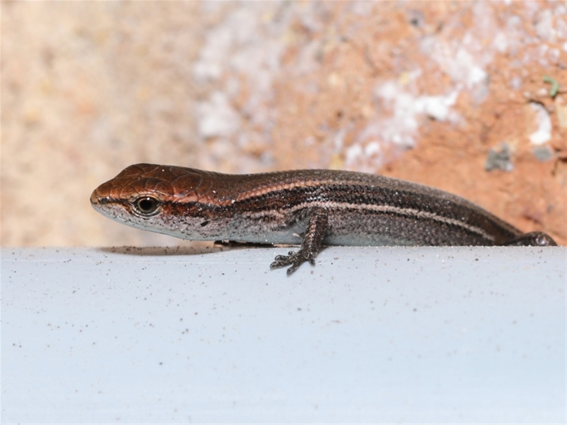 The skink's size can be gauged from the final image where the it was positioned in the small gap between two pavers.