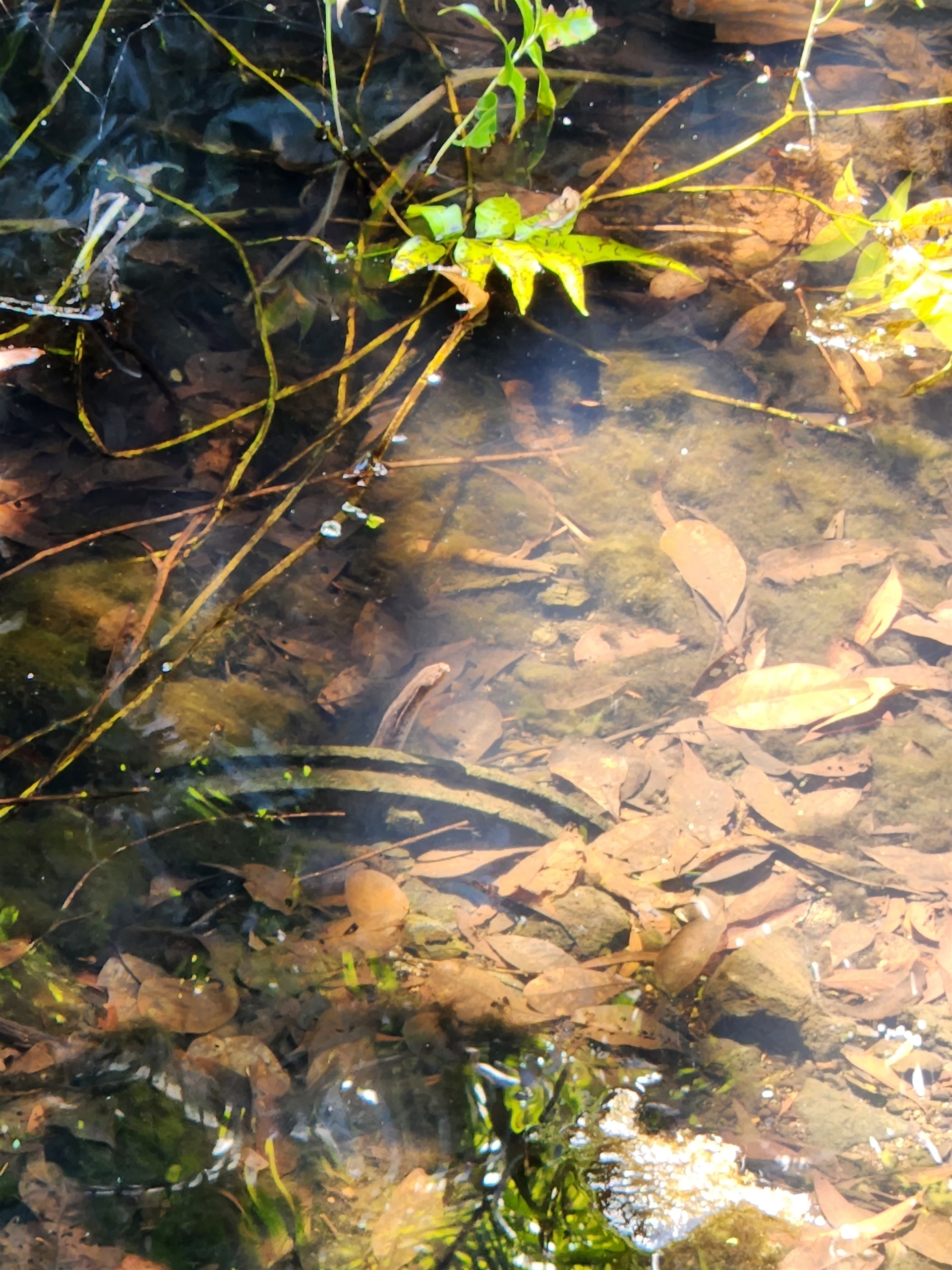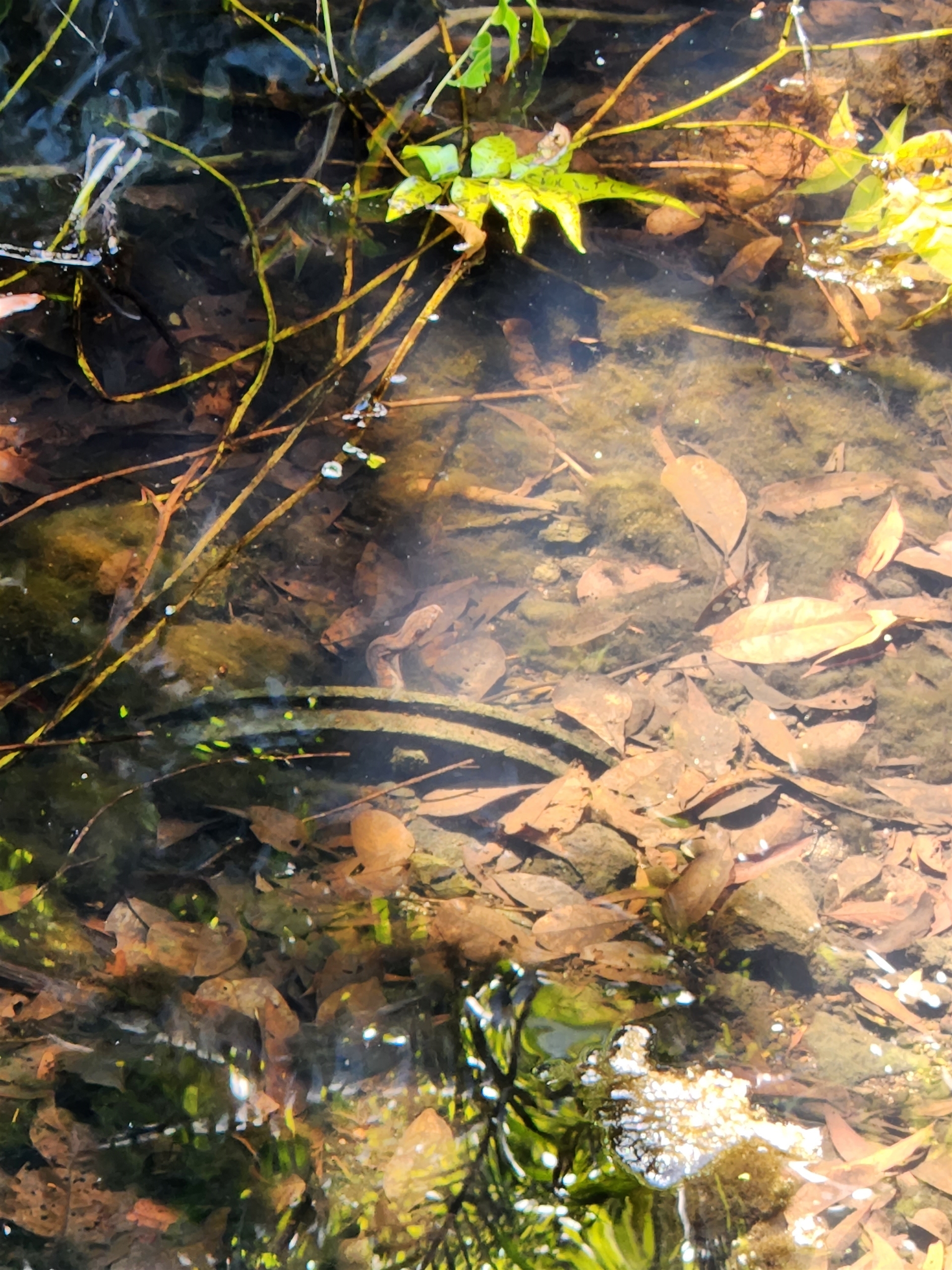 File snake in the water hiding under the metal thing. Several of them around.