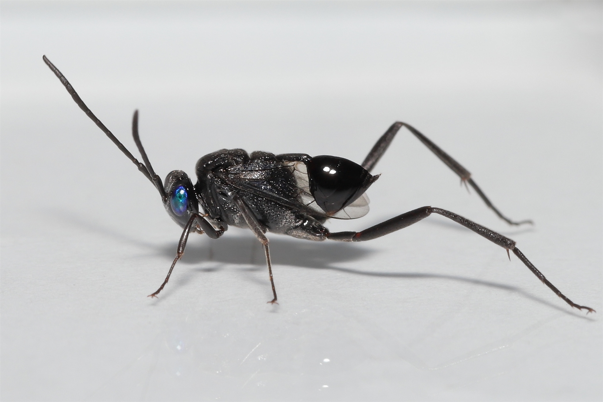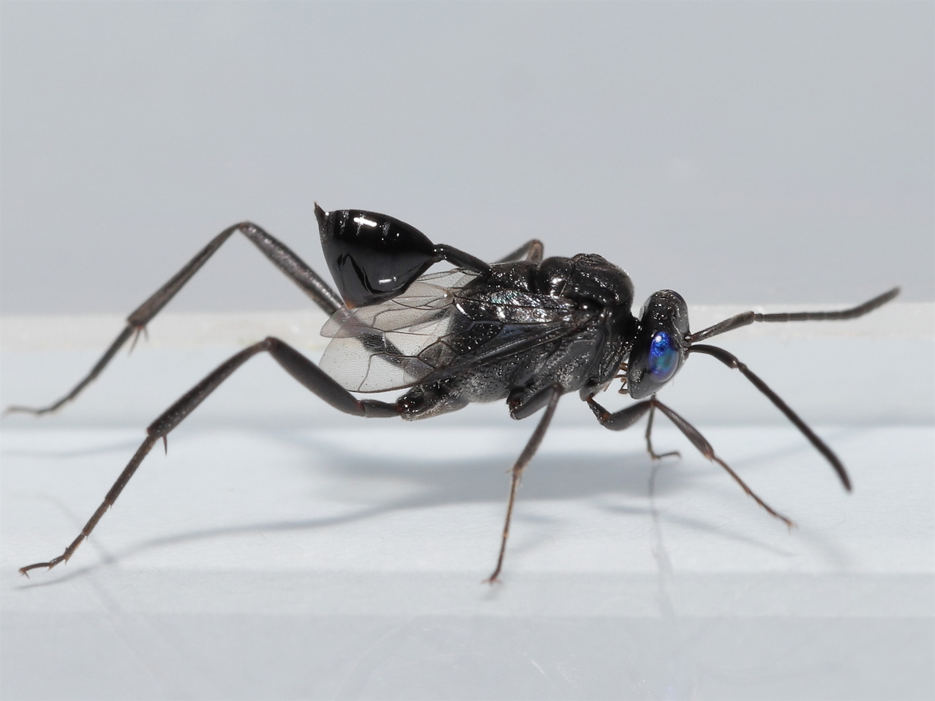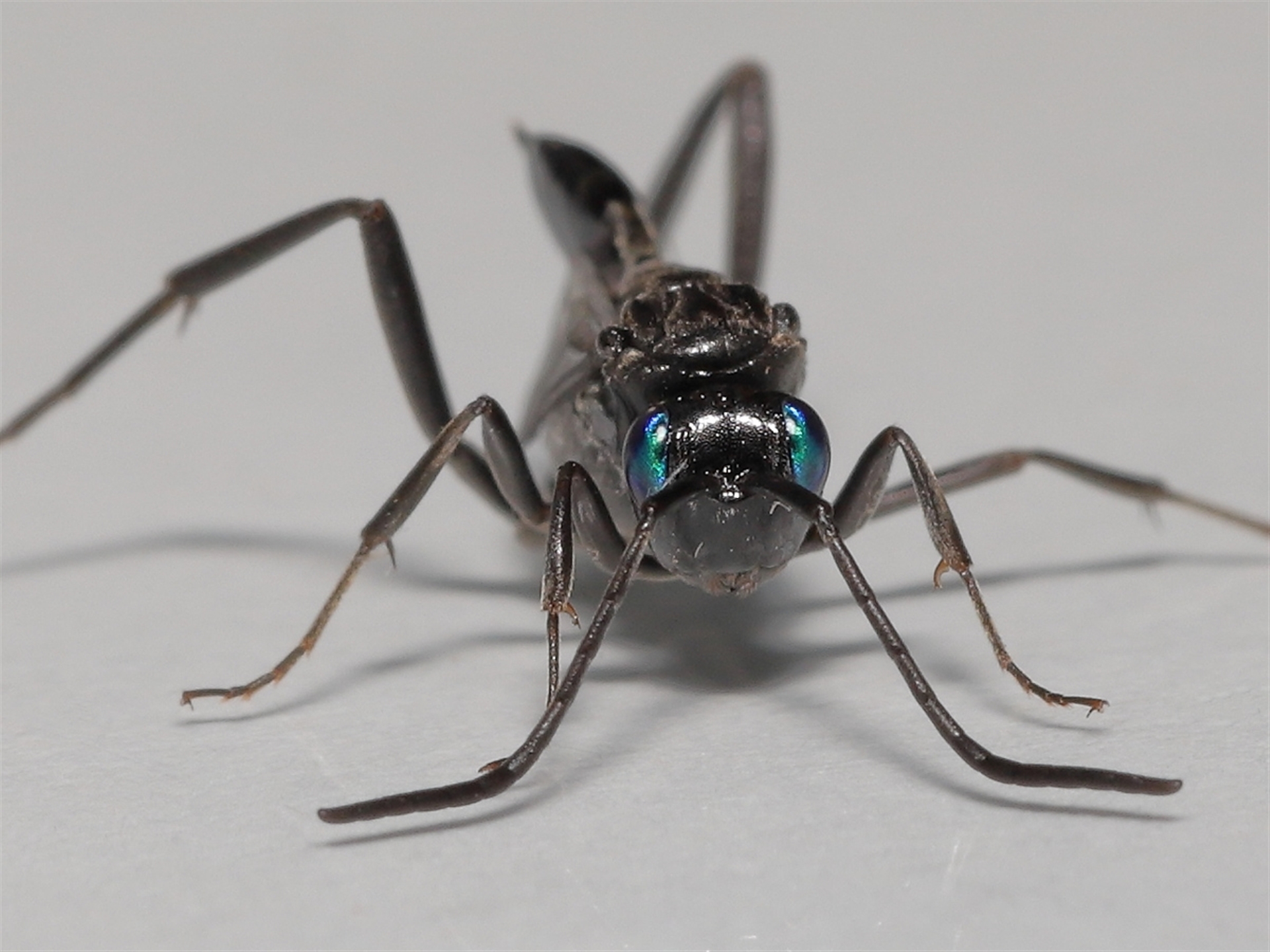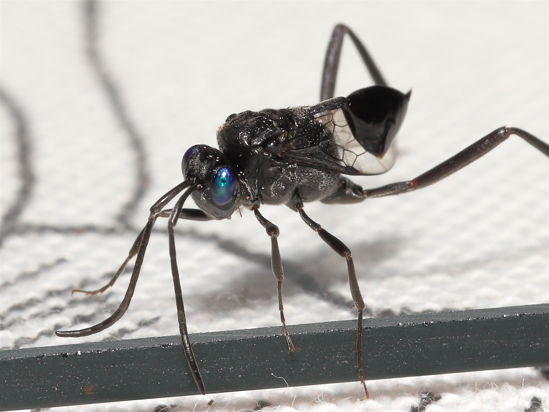 Thanks to Barbara for the initial sighting of this aptly named Hatchet wasp. The rear end of the wasp's body was constantly flicking up and down as it moved about.