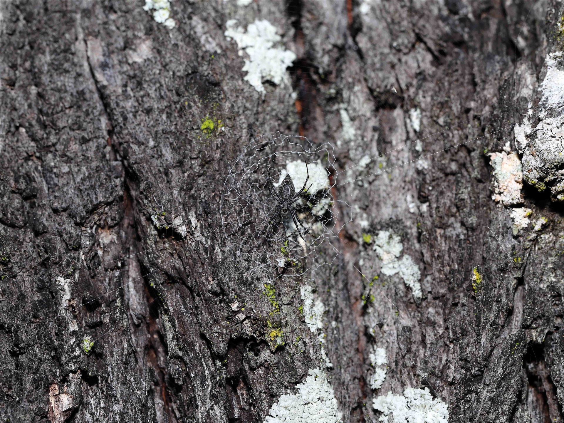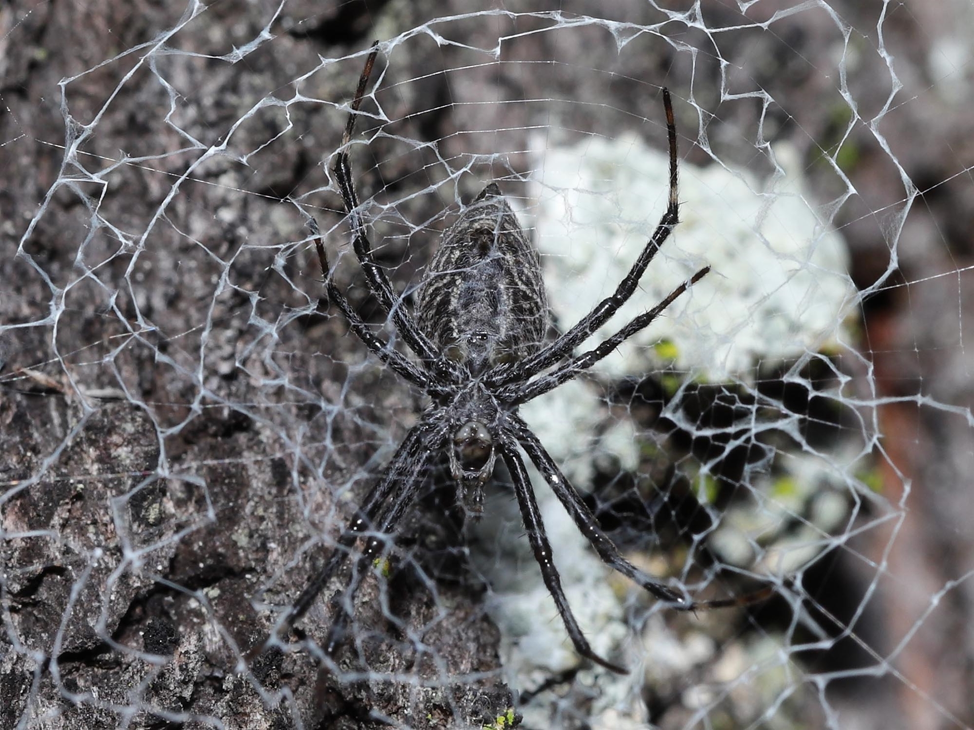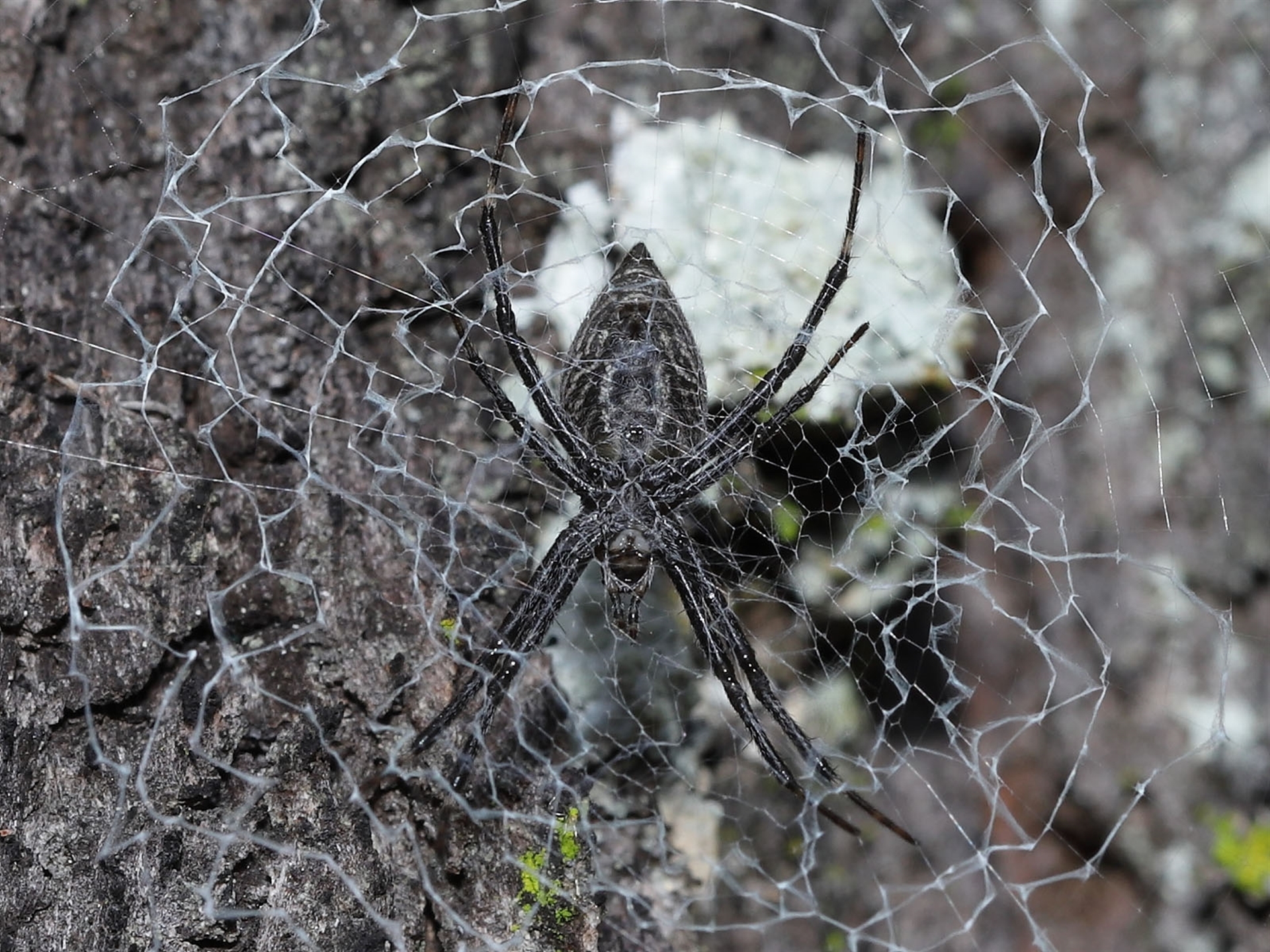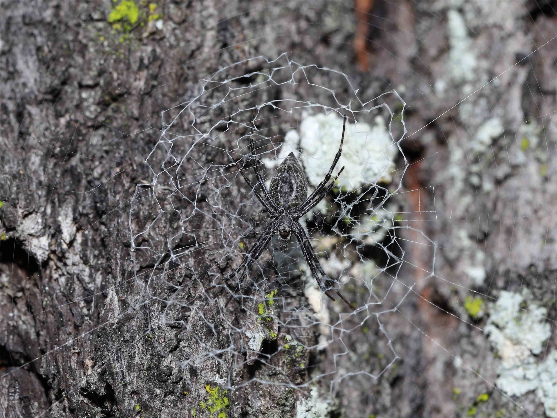 A Bark Hugging St Andrew's Cross Spider in its characteristic web.