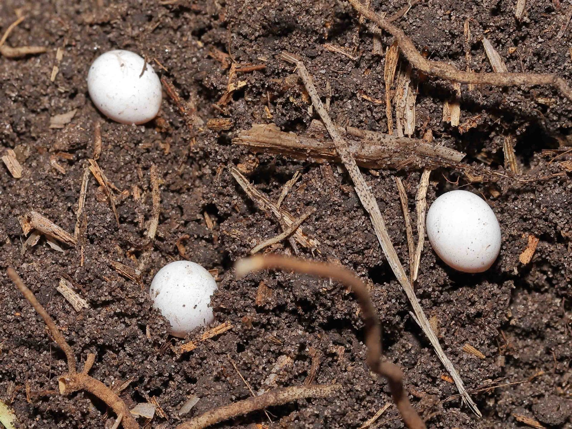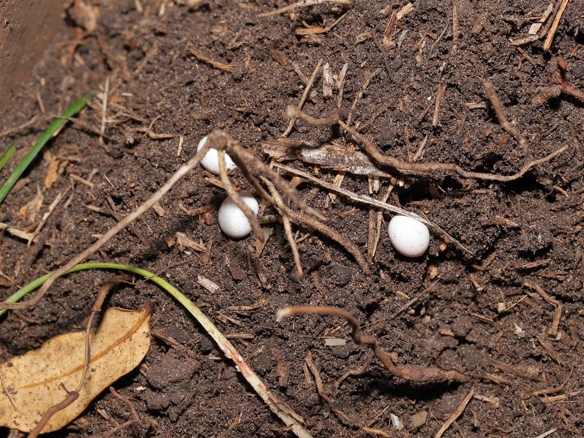 Thanks to Barbara for the initial sighting of these skink eggs which were found beneath a clay pot whilst gardening. The skinks subsequently emerged from the eggs 12 days later as shown in following sighting 4480975.