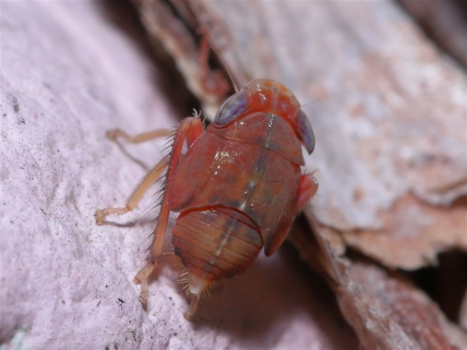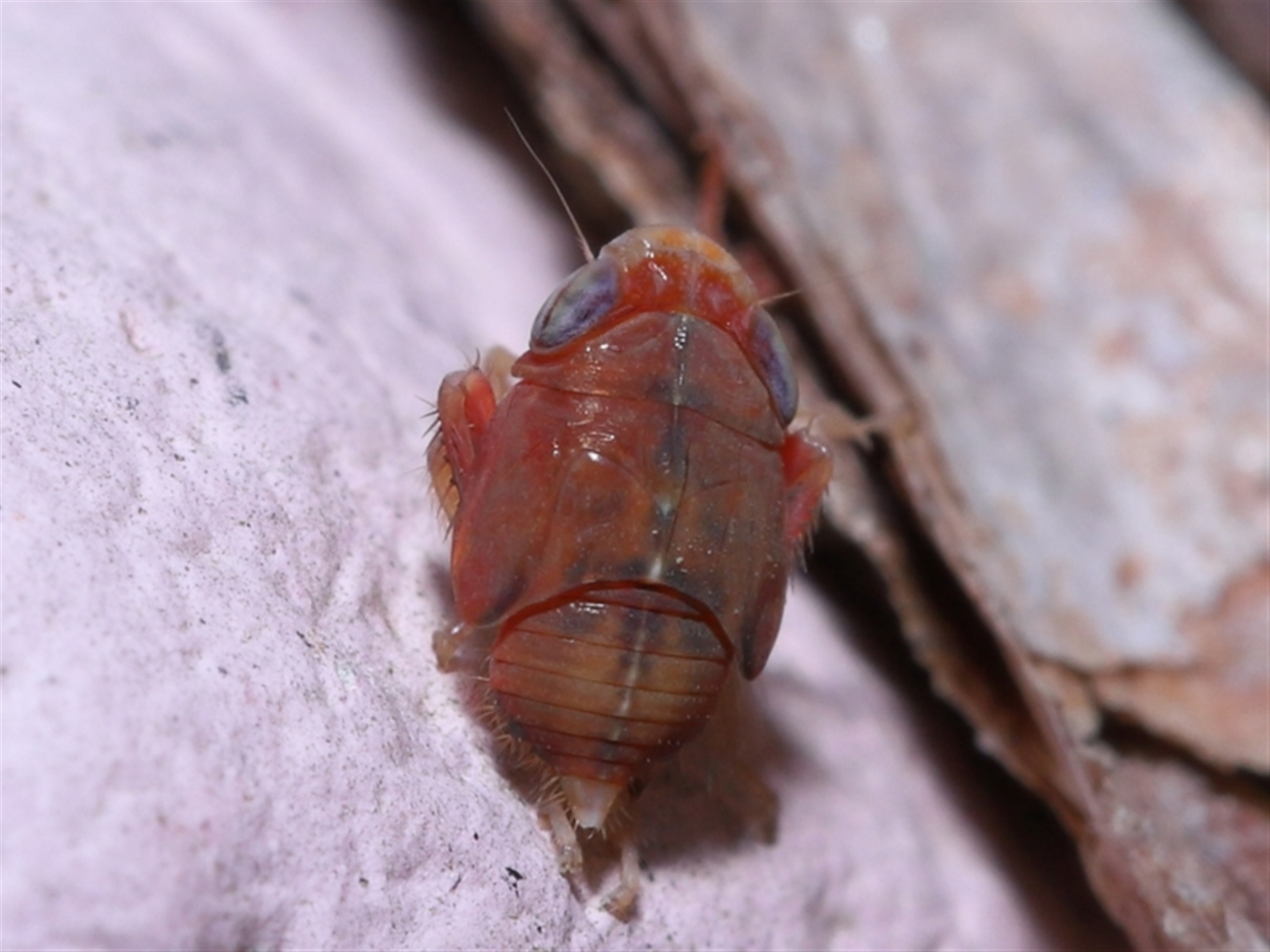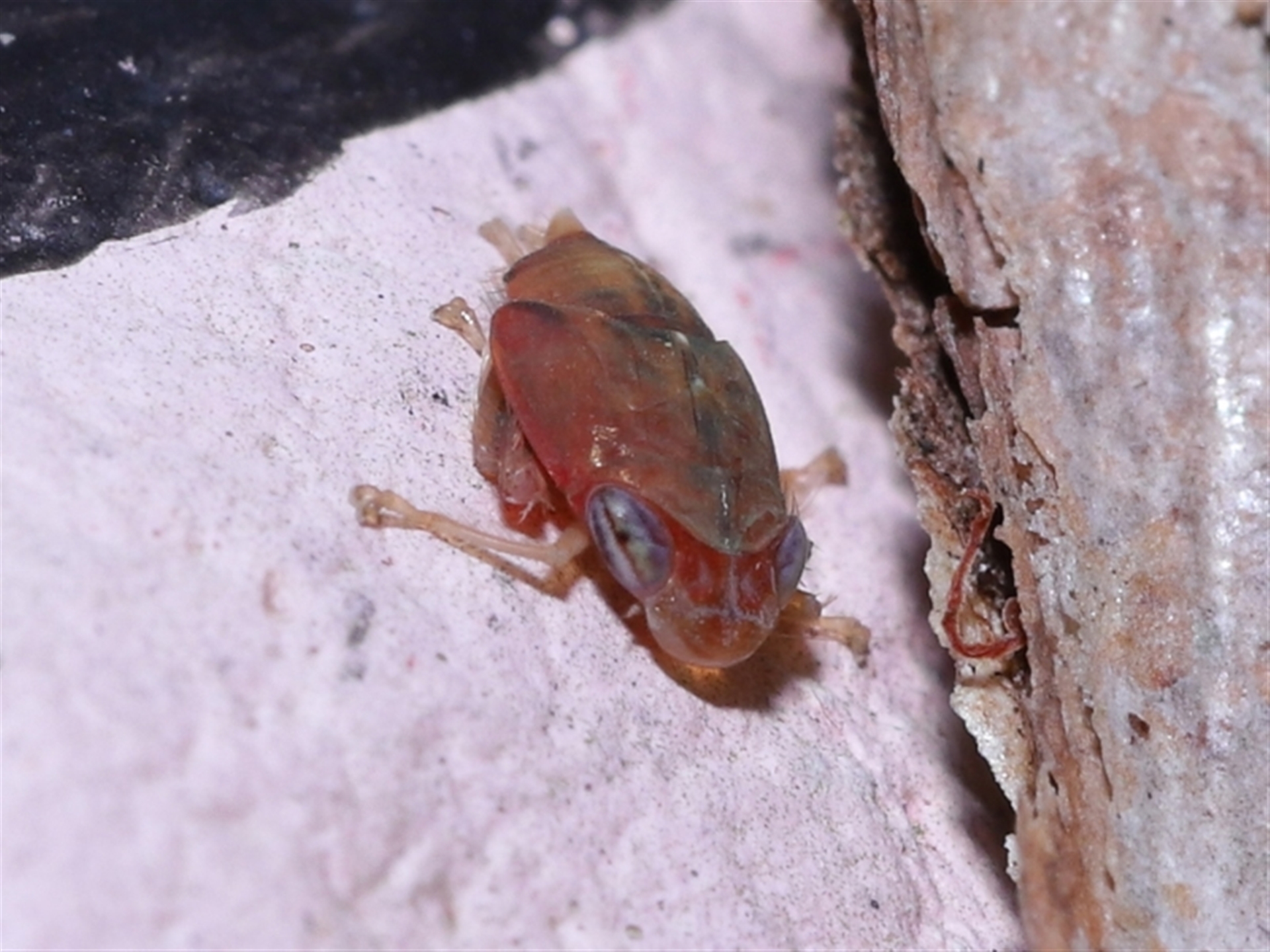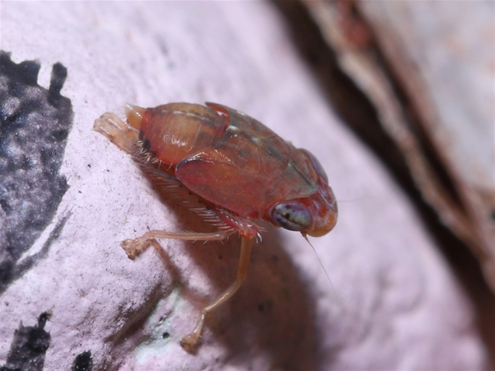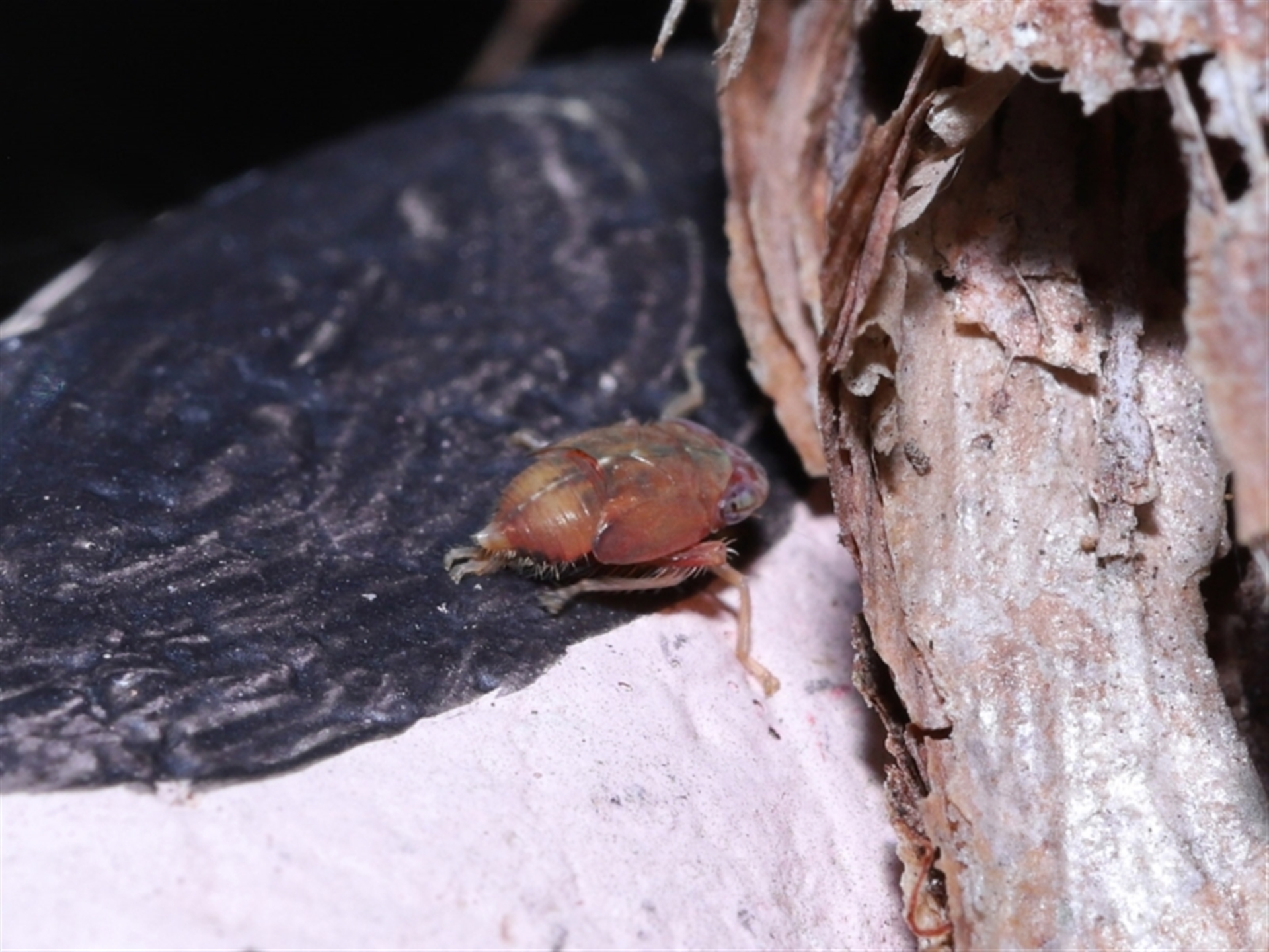 The hopper was sighted on a small pebble someone had painted pink/black and placed in the fork of a tree.
