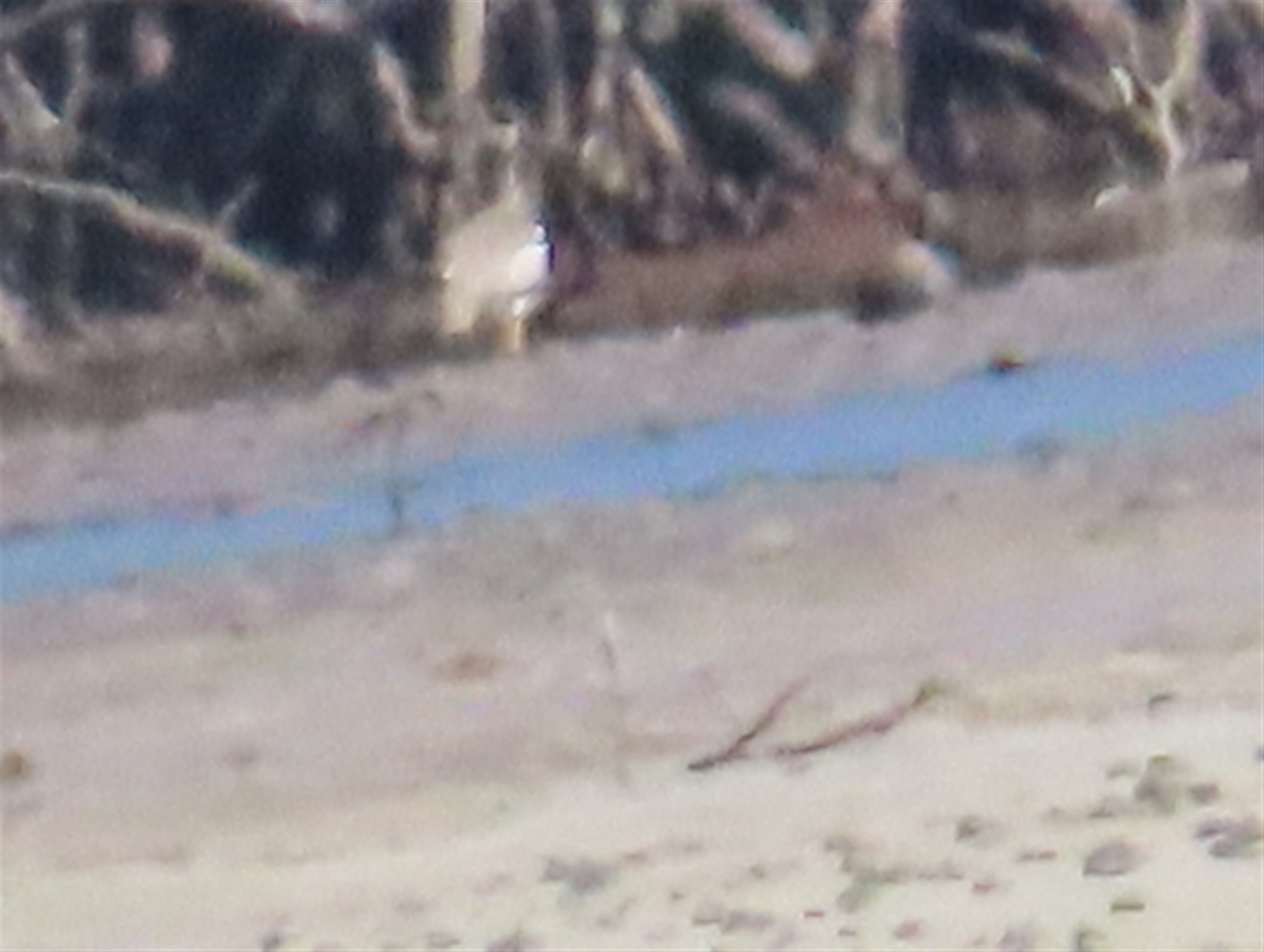 Single individual foraging on the mudflats bordering the mangroves north of the Packers Creek estuary. Viewed from the Port Douglas wharf, so about a kilometre away. Note the long yellow legs, pale brown colouration and striking black and white shoulder patch, which elliminate all other local species.