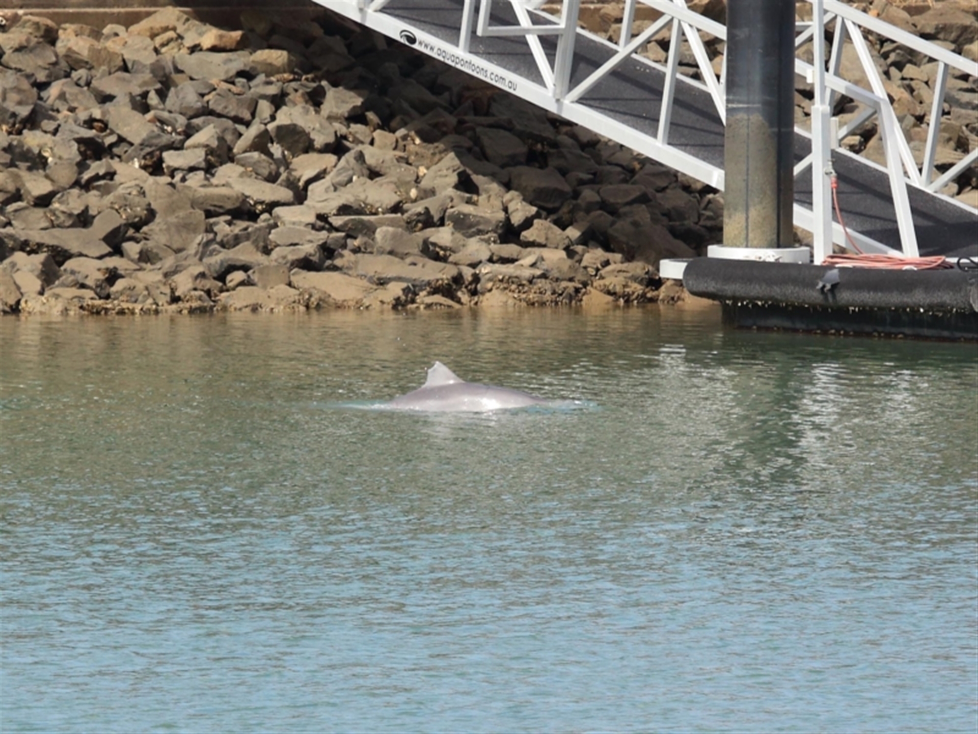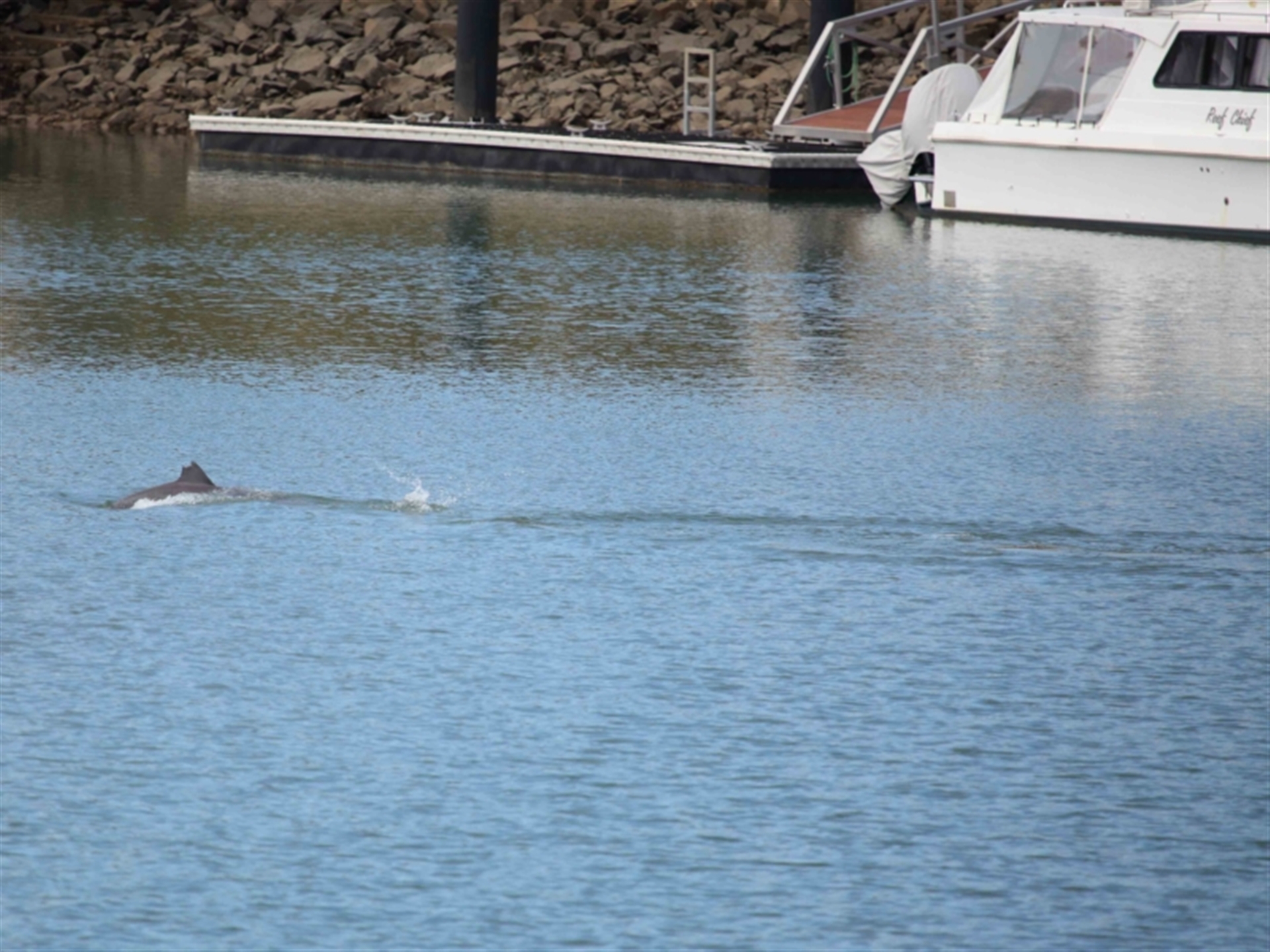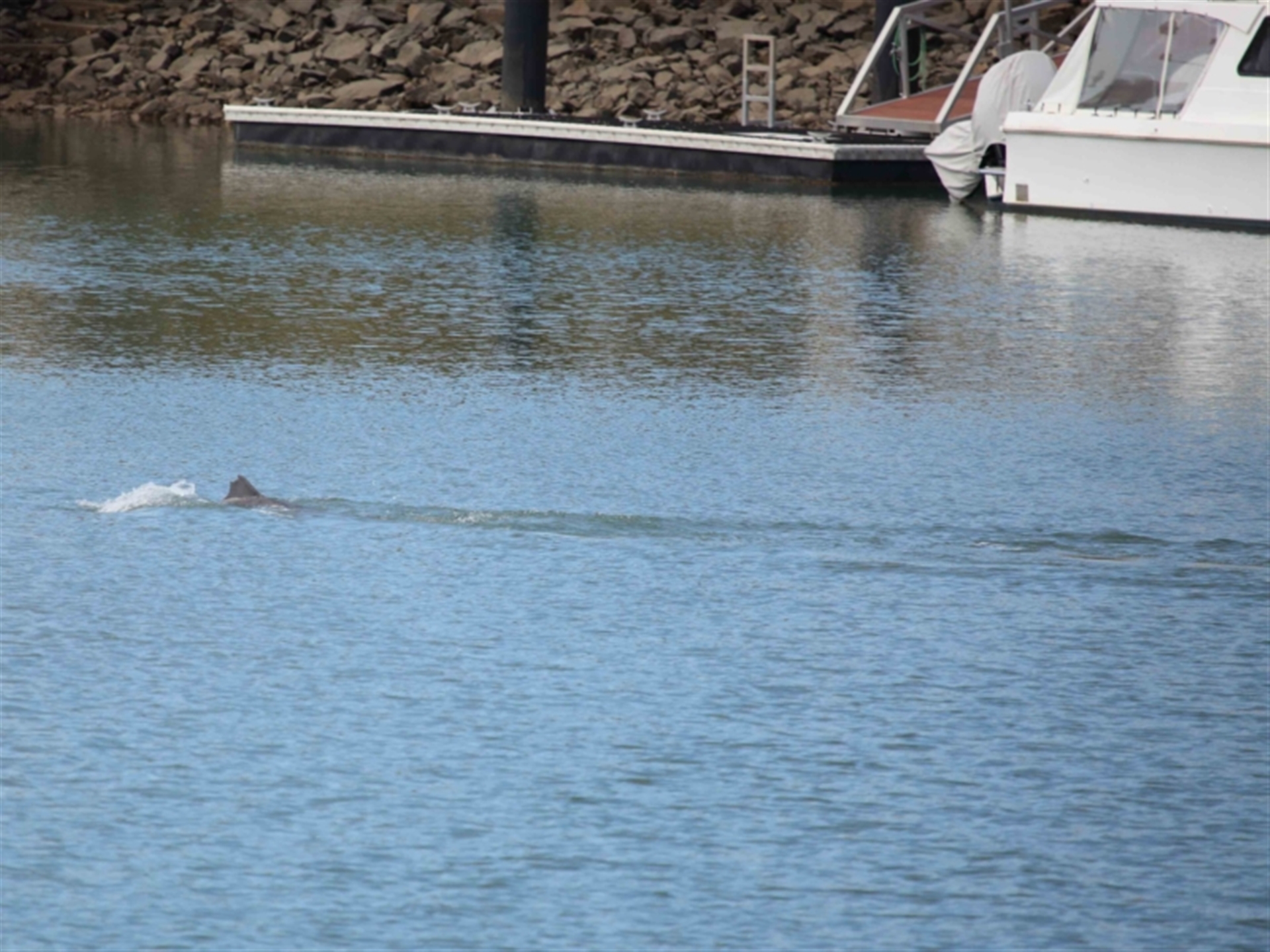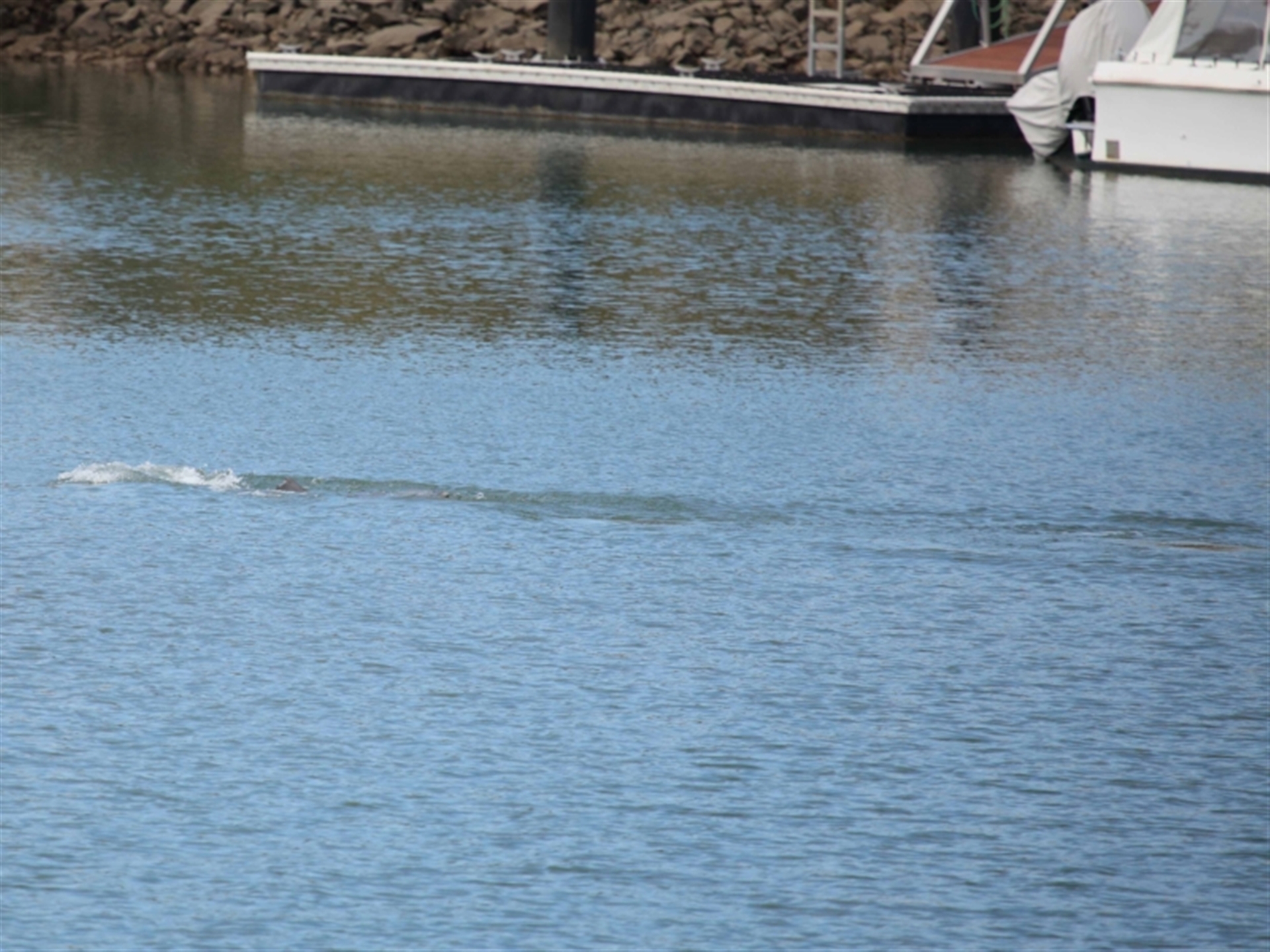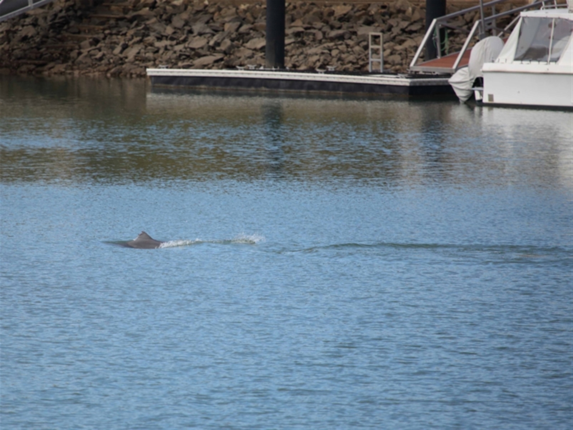 The Dolphin was seen entering the channel and then raced off chasing something just beneath the surface. The prey appeared to escape the Dolphin by moving even faster and in a straight line as seen in the images. The Dolphin was later sighted leaving the channel as seen in following sighting 4505983.