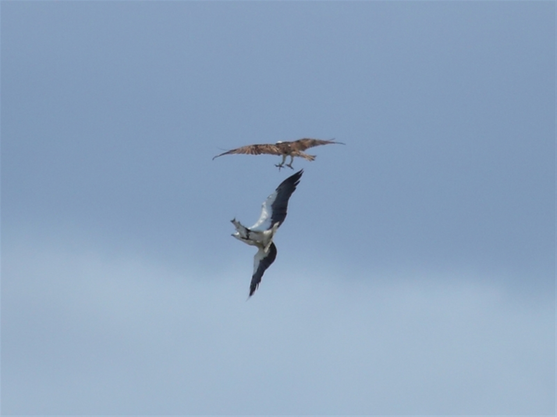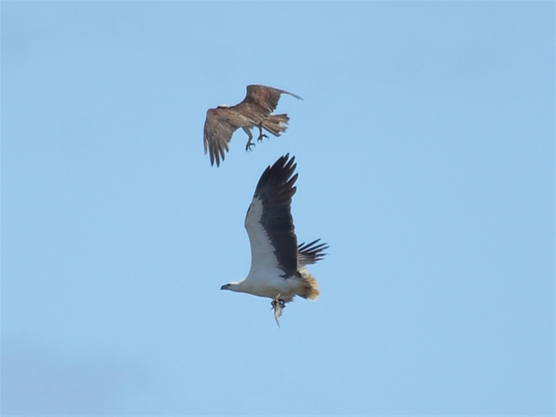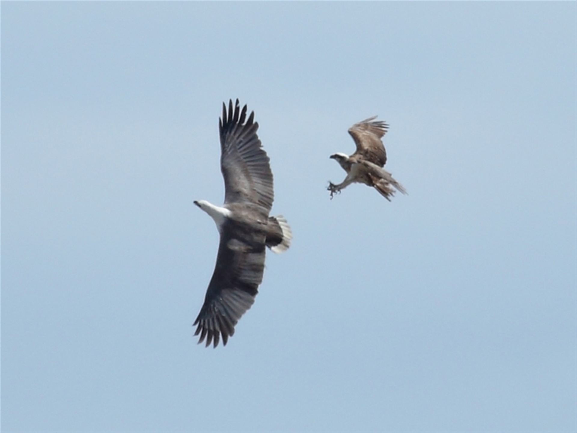 A very nice sighting that shows the direct size comparison between the White-bellied Sea-Eagle and the Osprey.