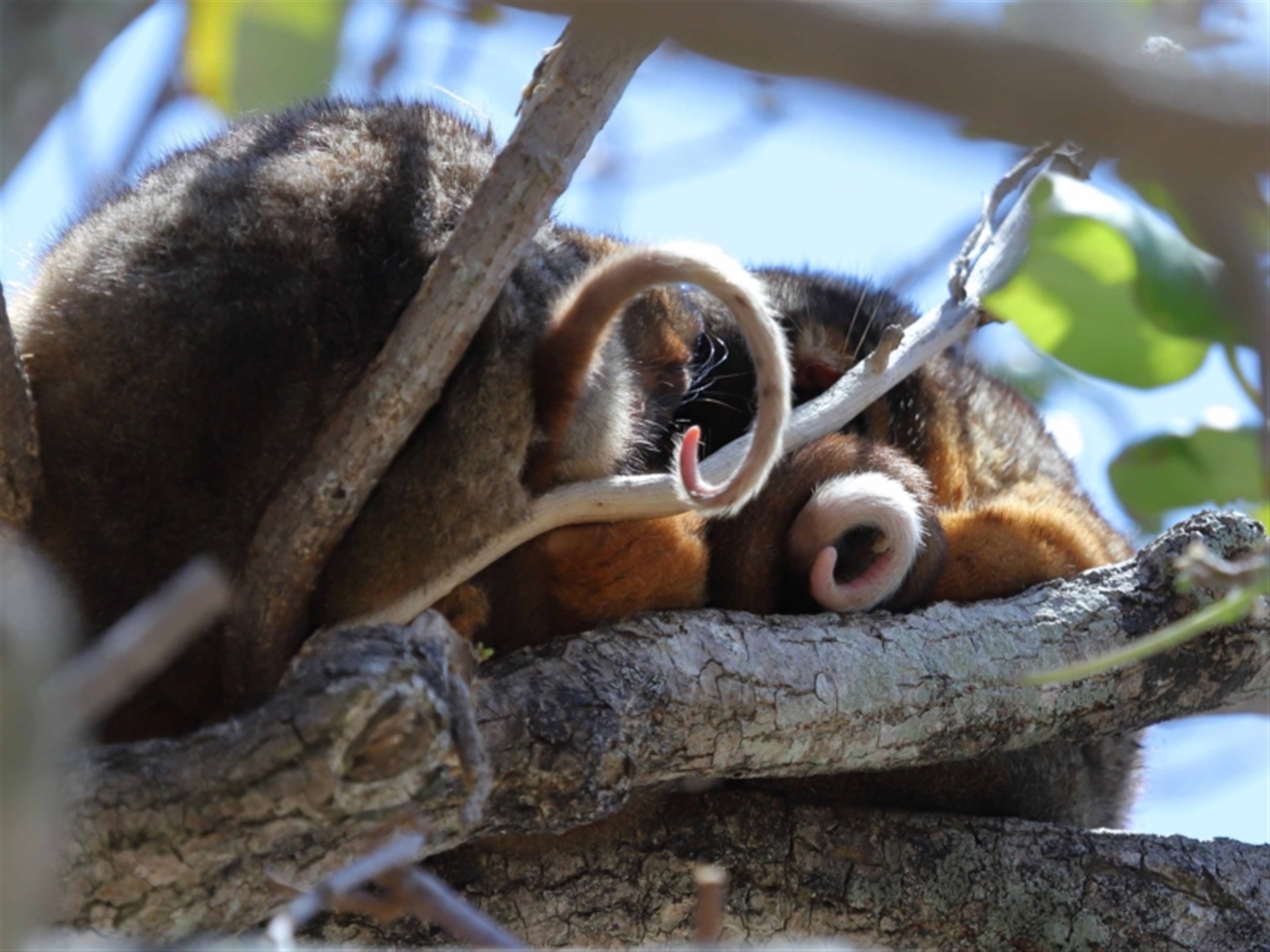 These 3 were sighted hidden away within the foliage of a tree, sleepy and fidgeting away, trying to get comfortable. Thanks to Barbara for the initial sighting.