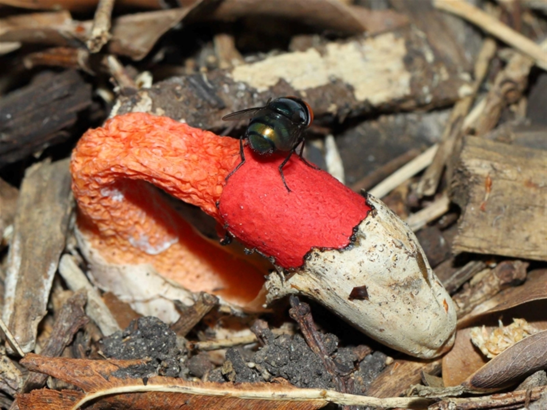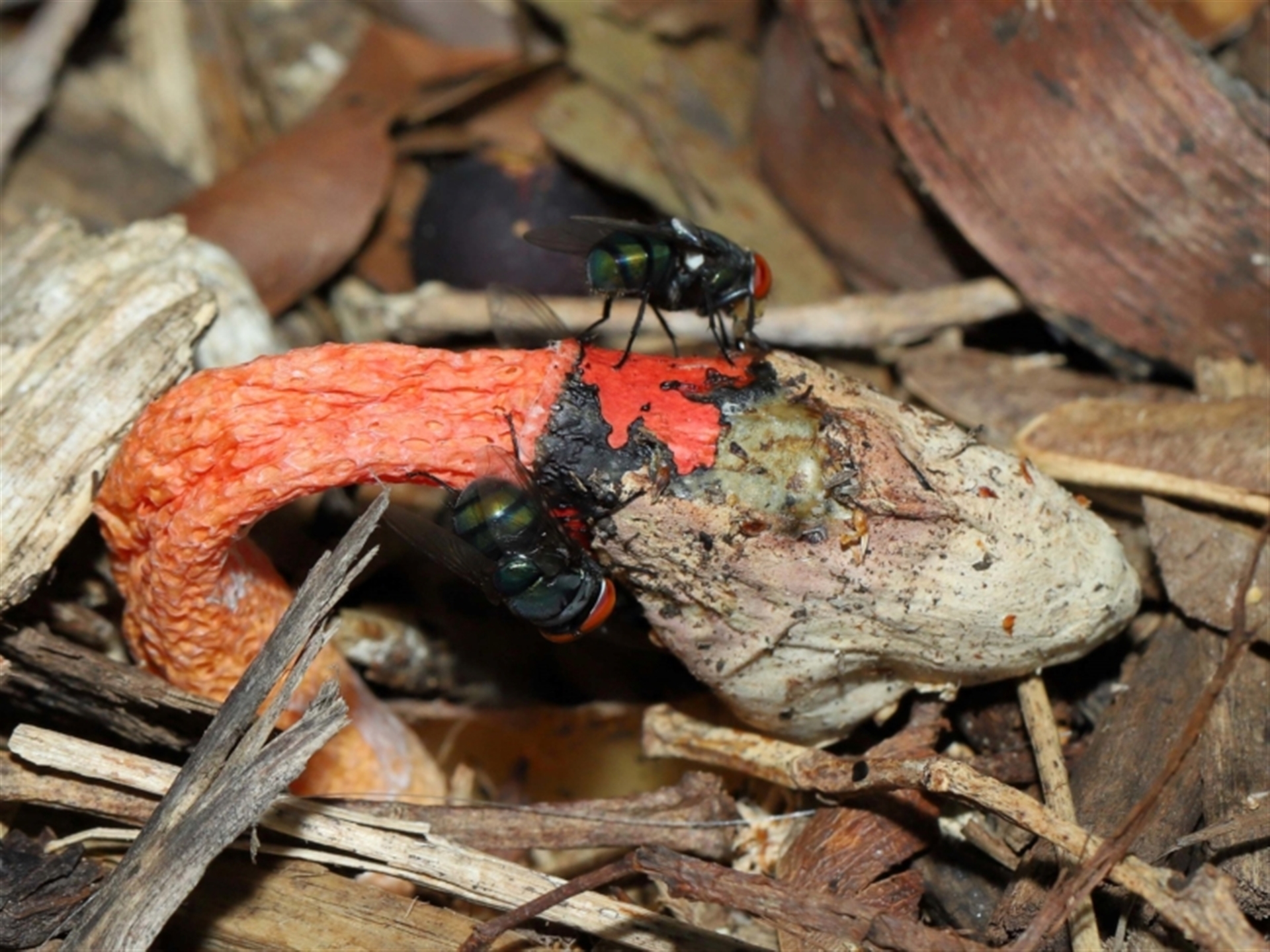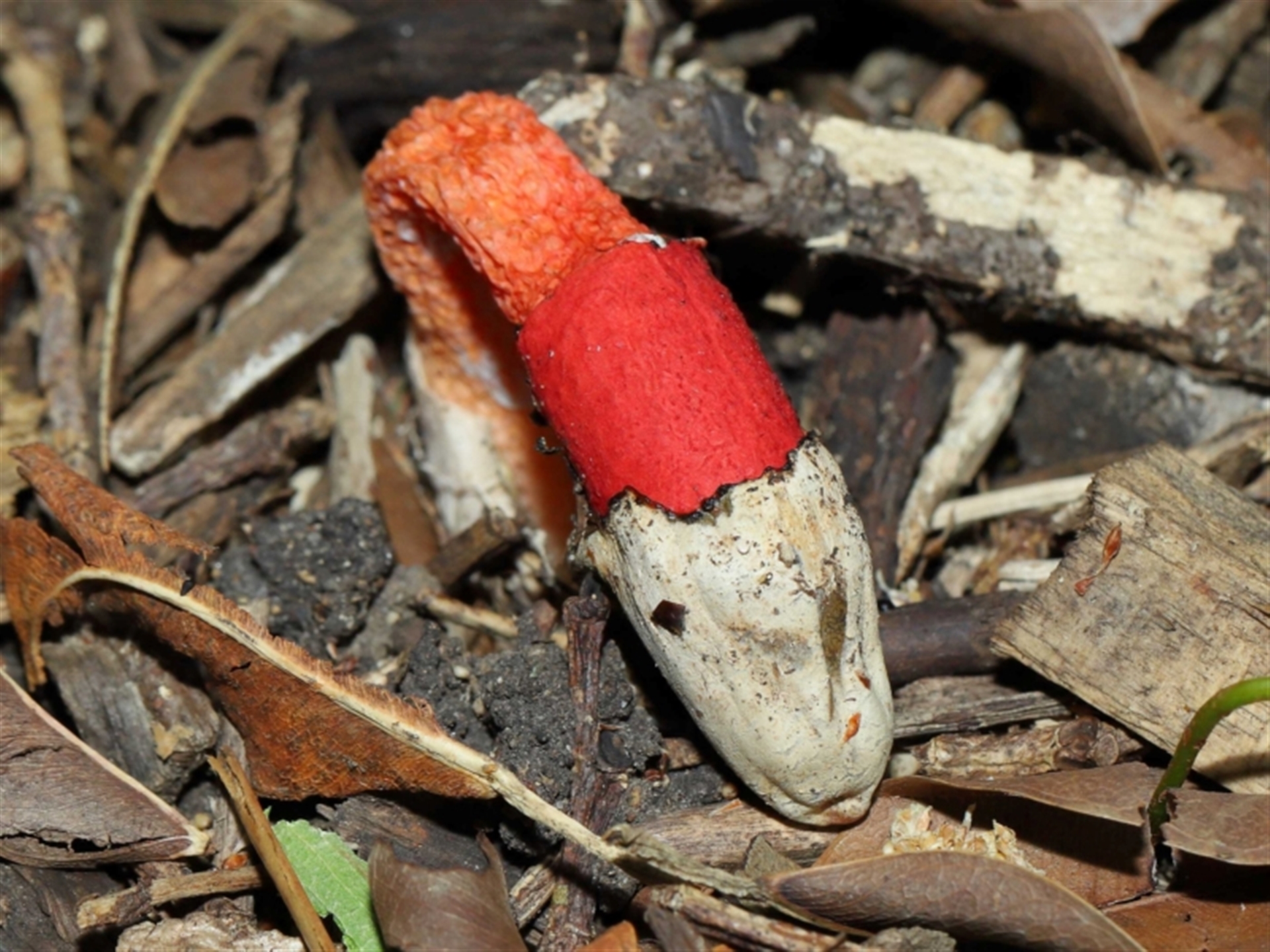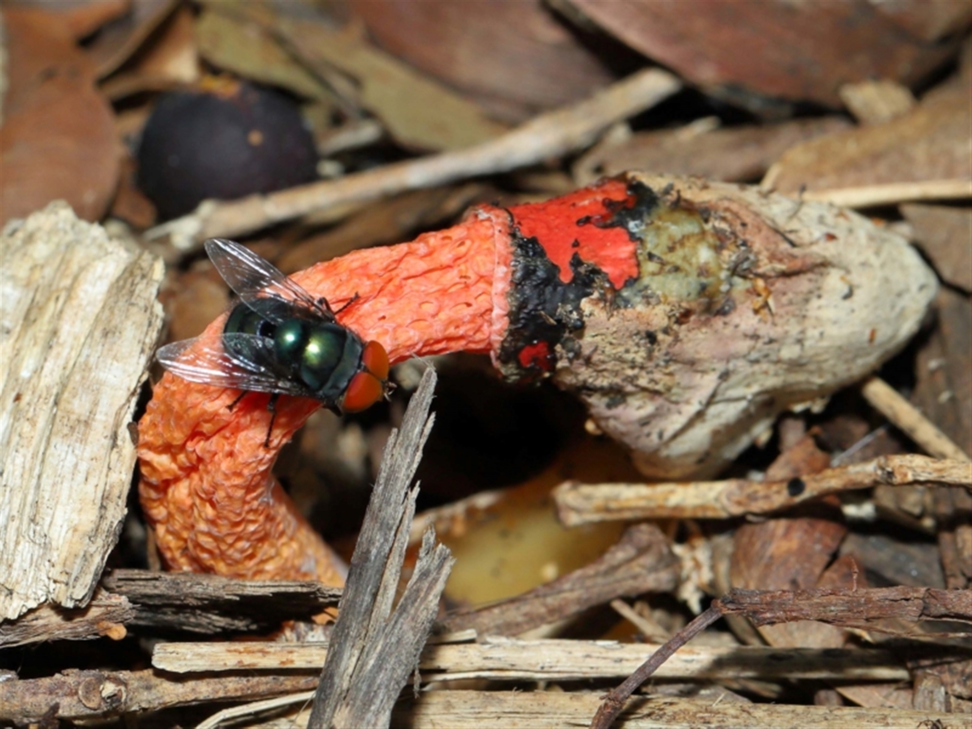 TimL NatureMapr Greater Brisbane Stinkhorns, some other shape- and miscellaneous Stinkhorns: with a smelly, brownish spore slime Fungi Phallus rubicundus