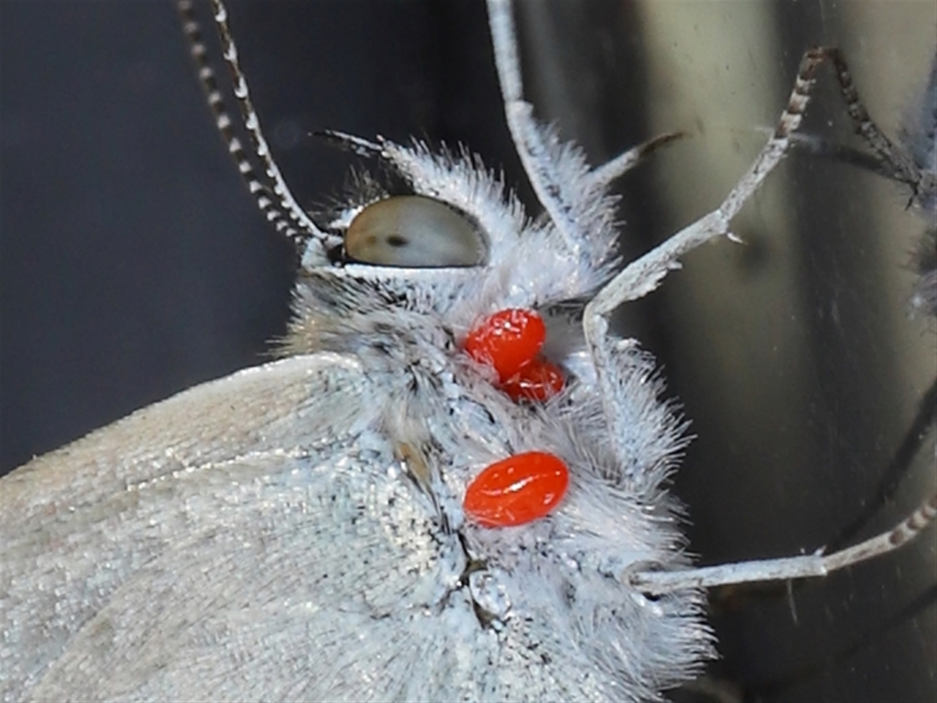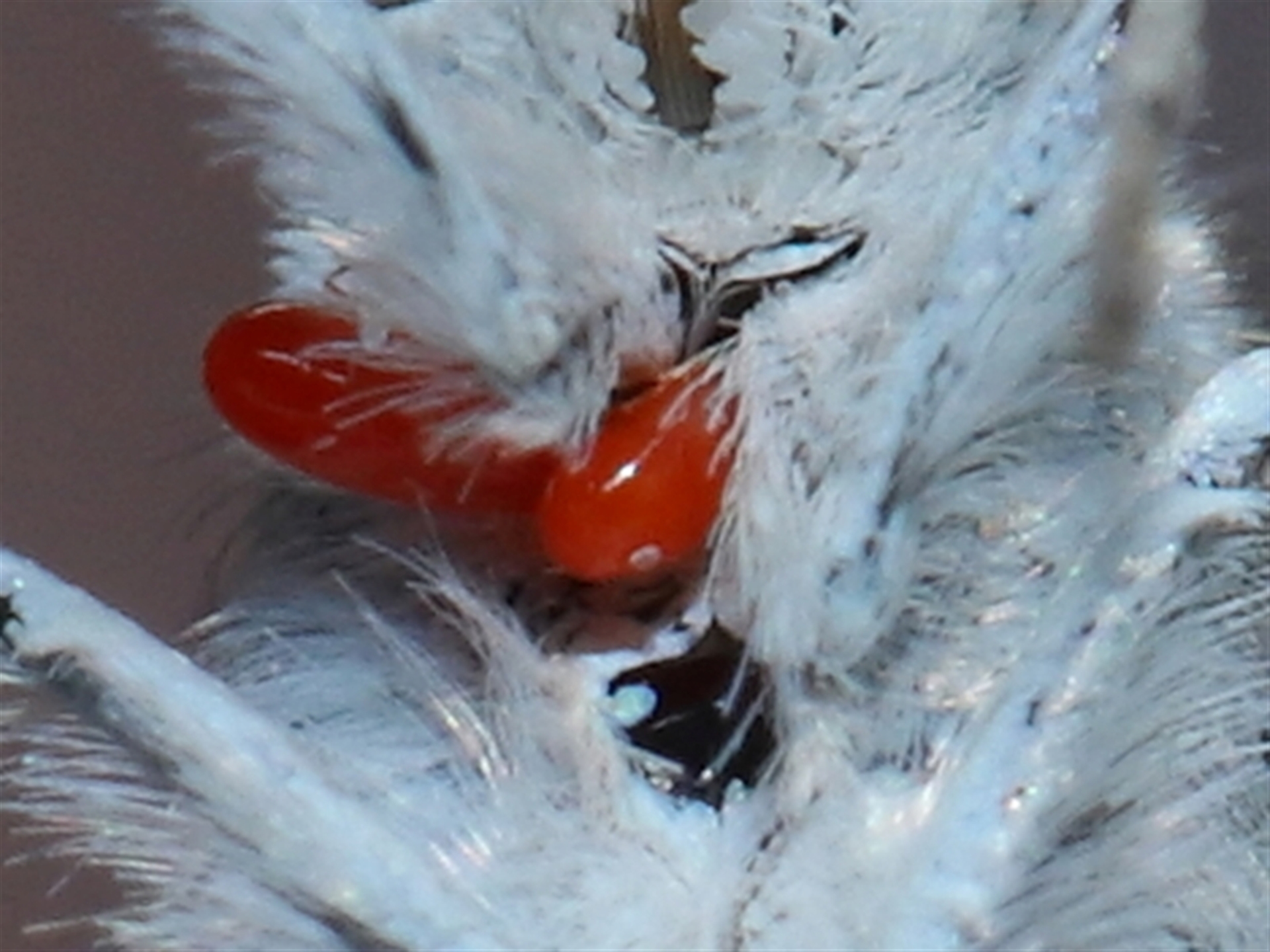 The final image shows two mites attached to the underside of the head. One of these had a much smaller light-coloured life form on its back, which was seen moving about whilst I was taking the images. Expect the unexpected.