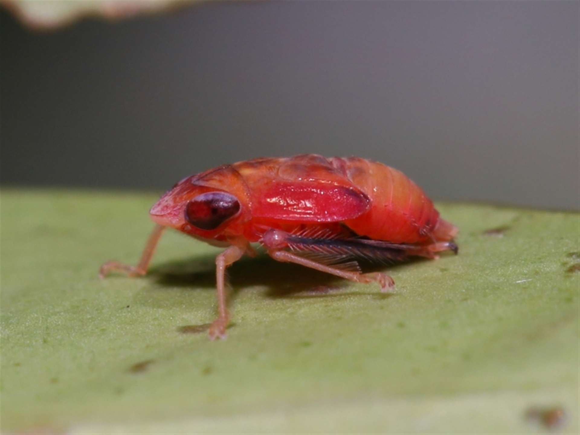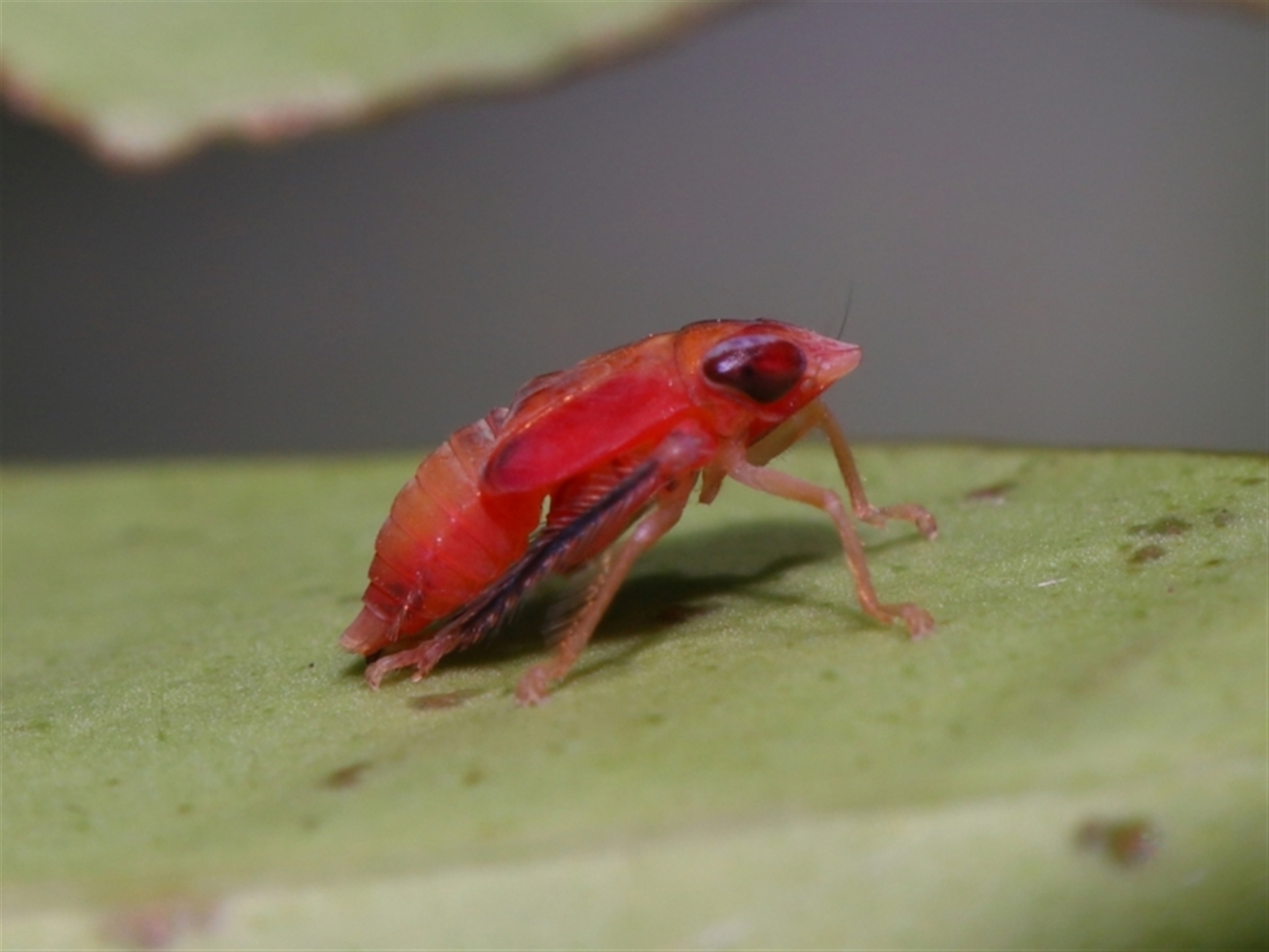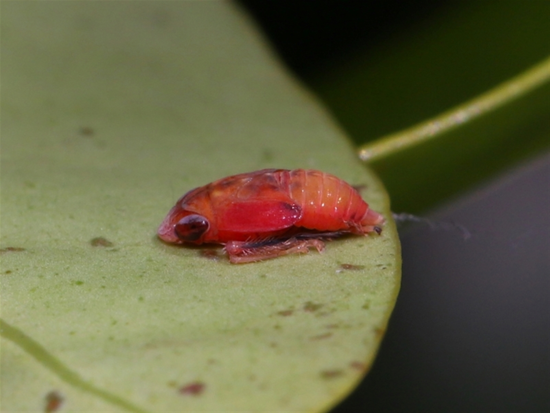 A small orange dot on a leaf turned out to be a Hopper.