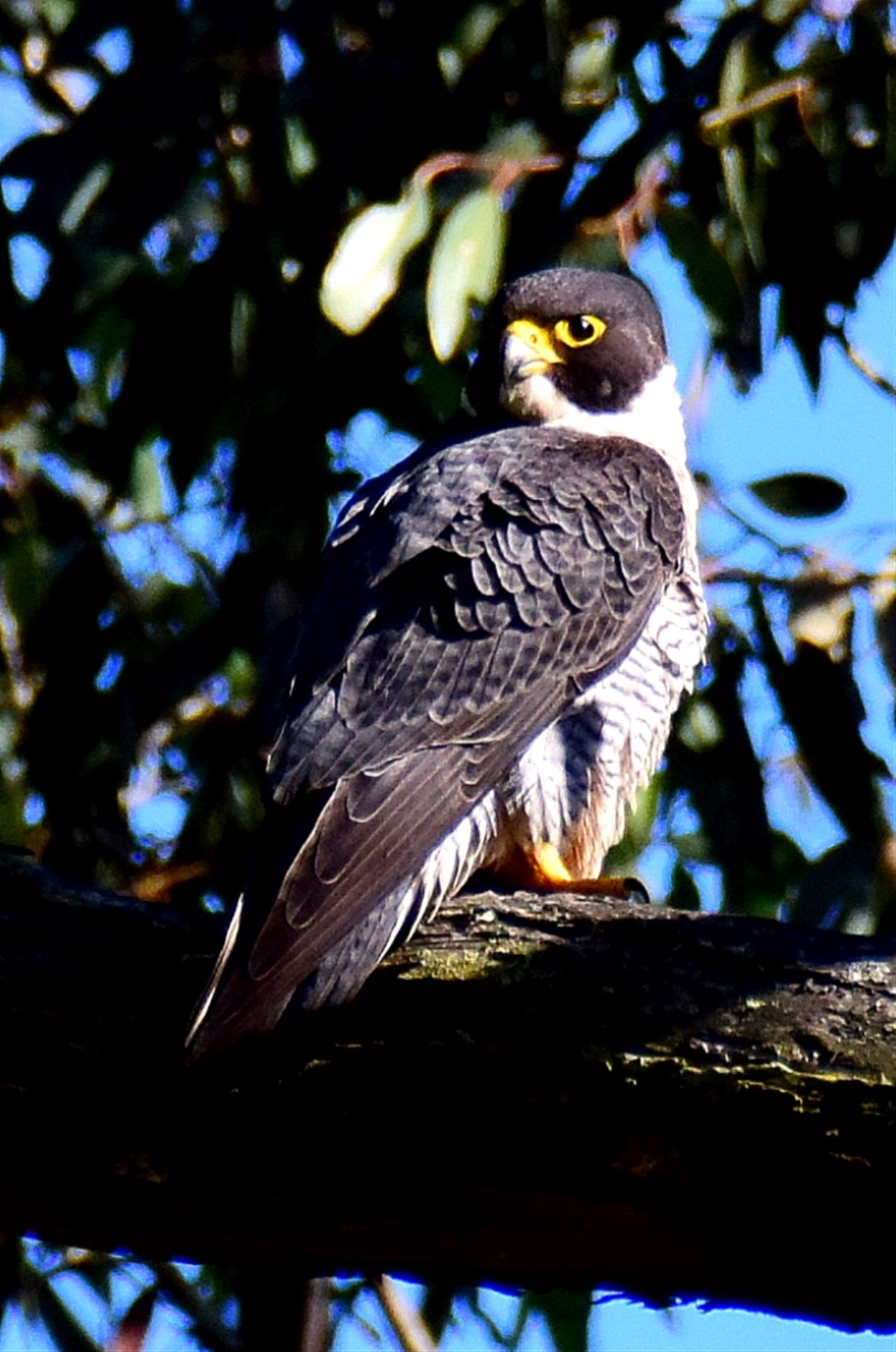 Nyora Conservation Reserve. Attracted by feeding calls, male and female were found, probable nest site was 30 metres away. Feathers found near base of nest tree. Unable to confirm nestlings. The female, in denser foliage, was cleaning fresh blood from her feathers after a kill , the male was in attendance 5-6 meters further out.