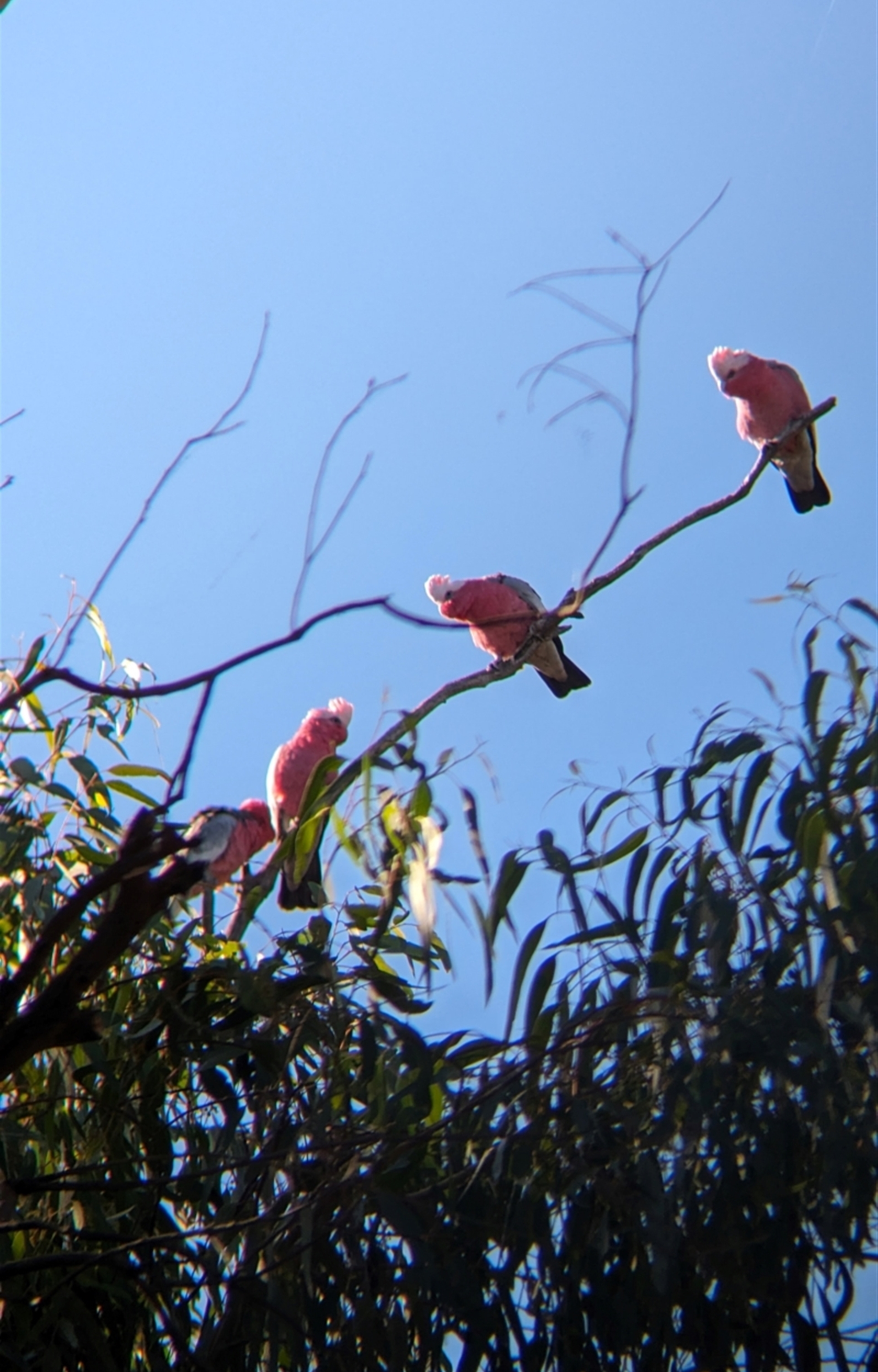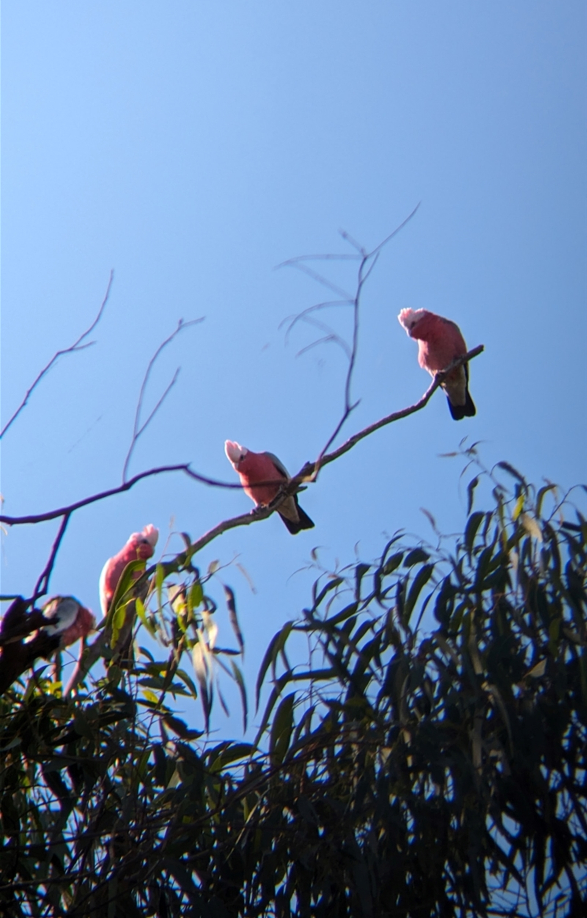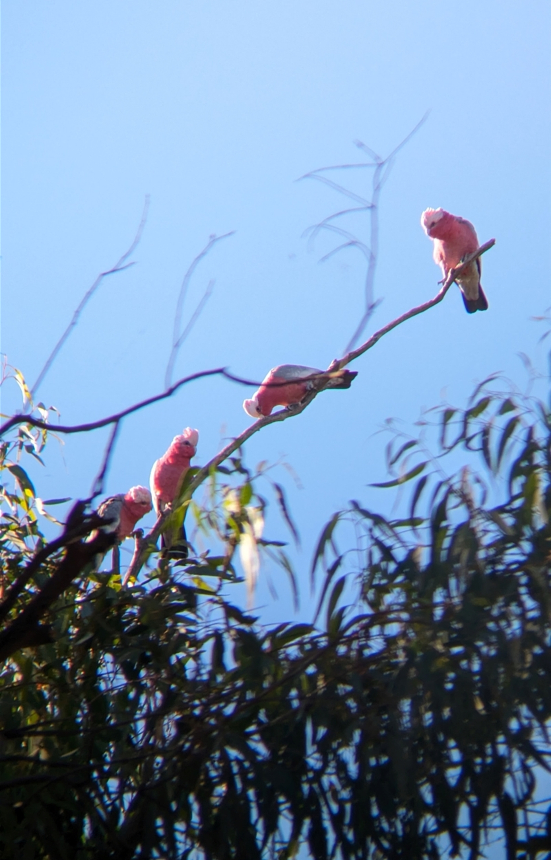 Little flock of galahs watching me walk past