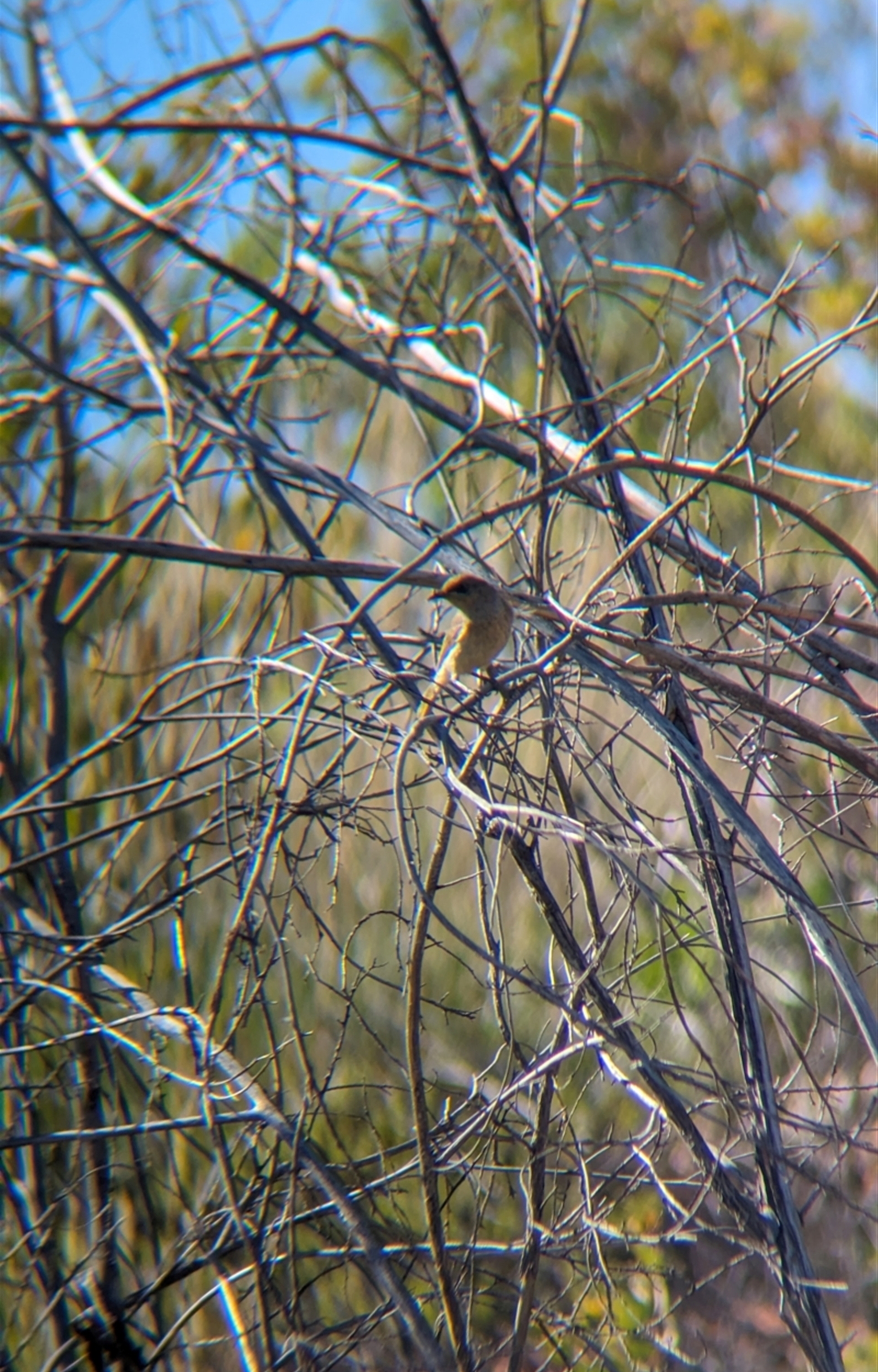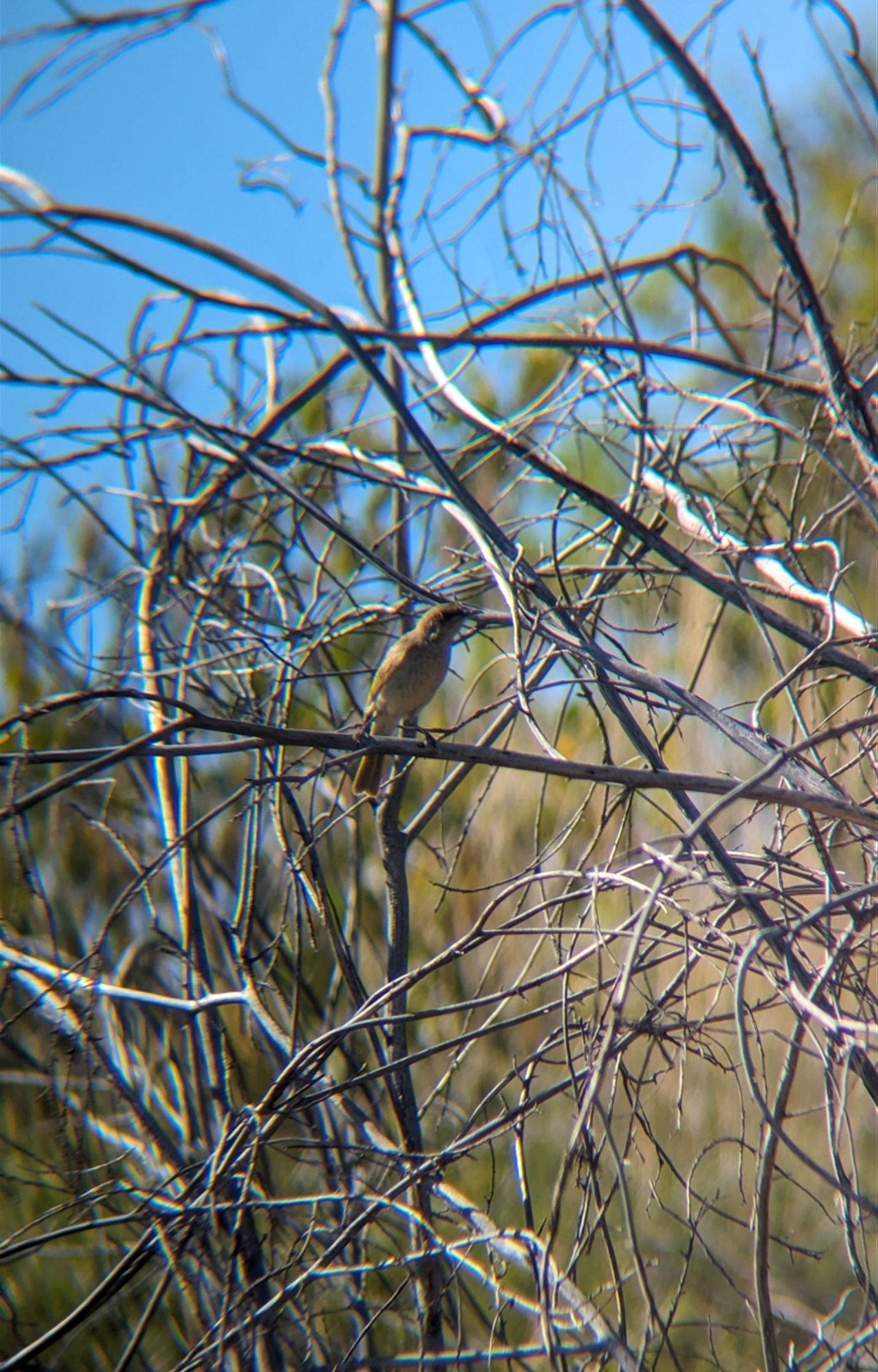 Couple of brown honeyeaters flitting around in the shrubs