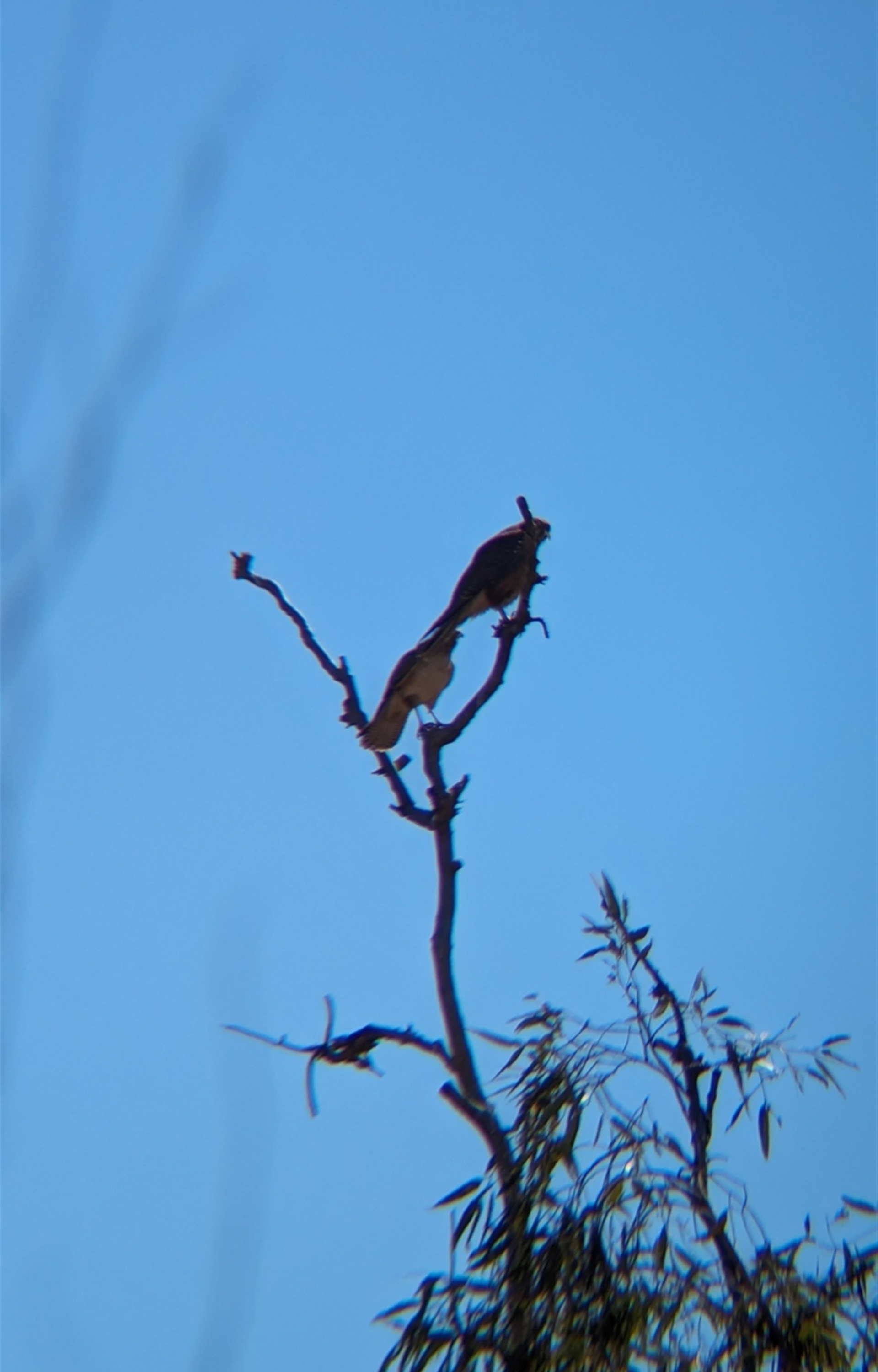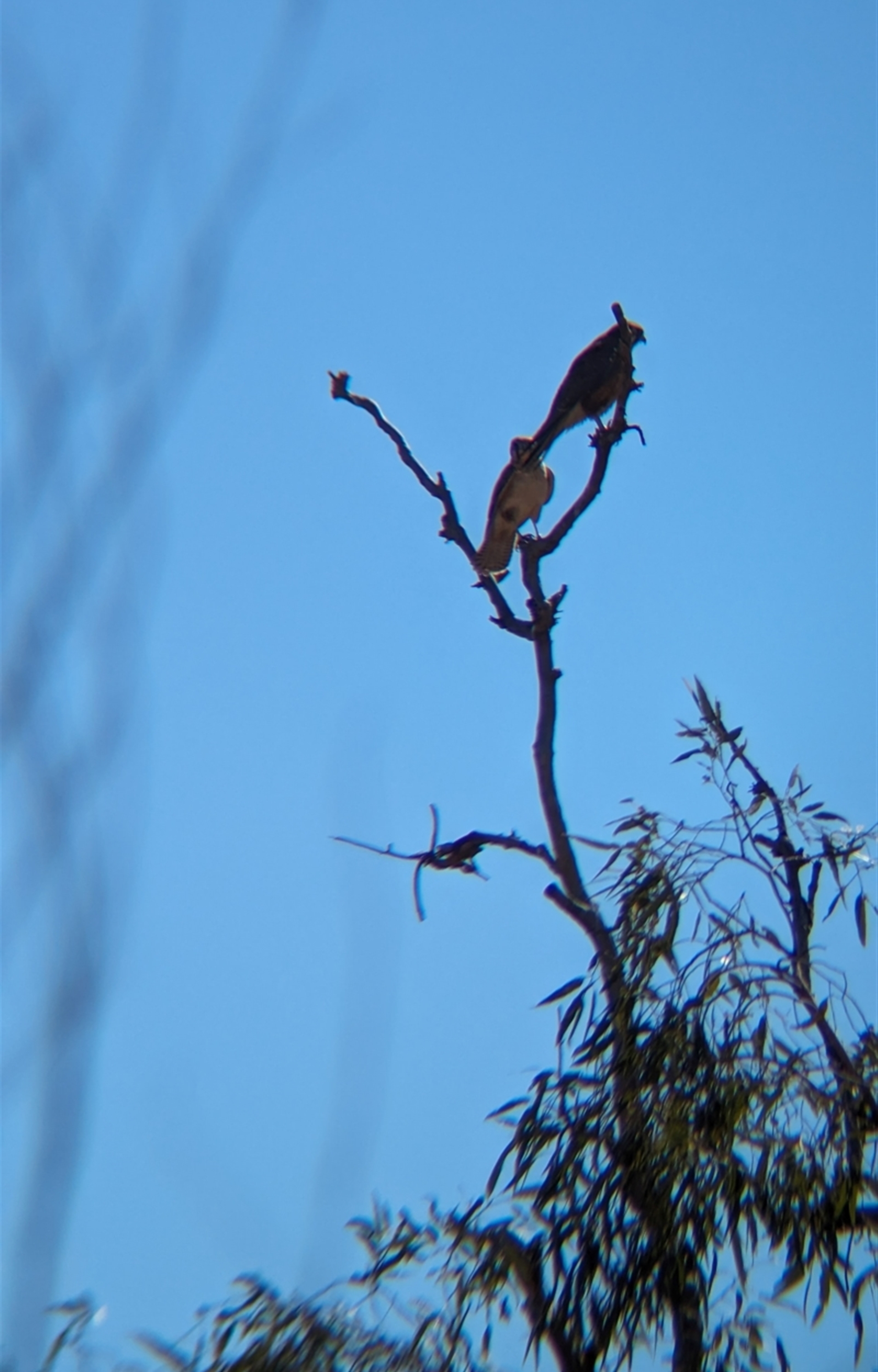 Pair of Brown Falcons perched in a tree