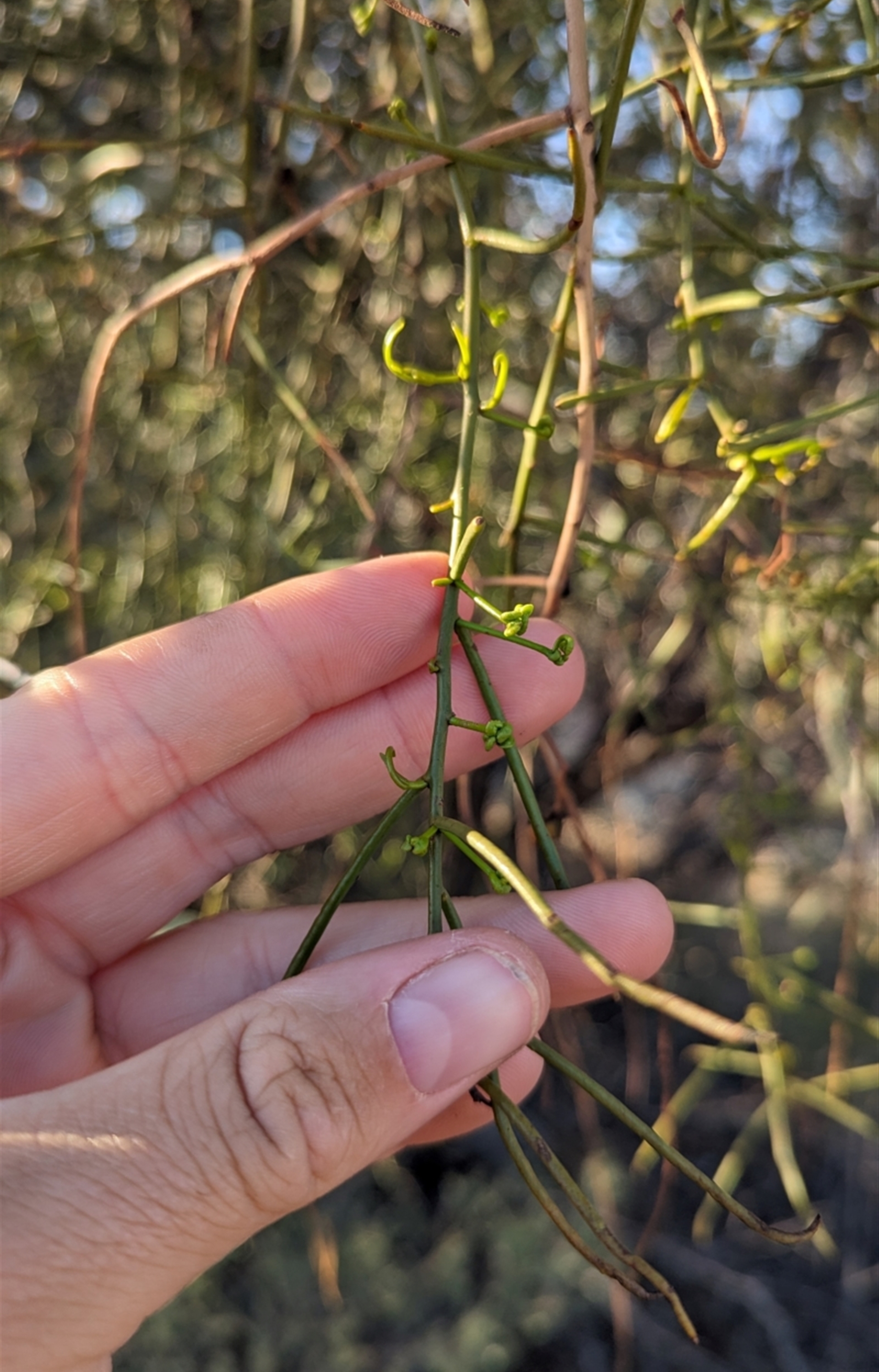 Couple of wire-leaved mistletoes growing in a common mulga