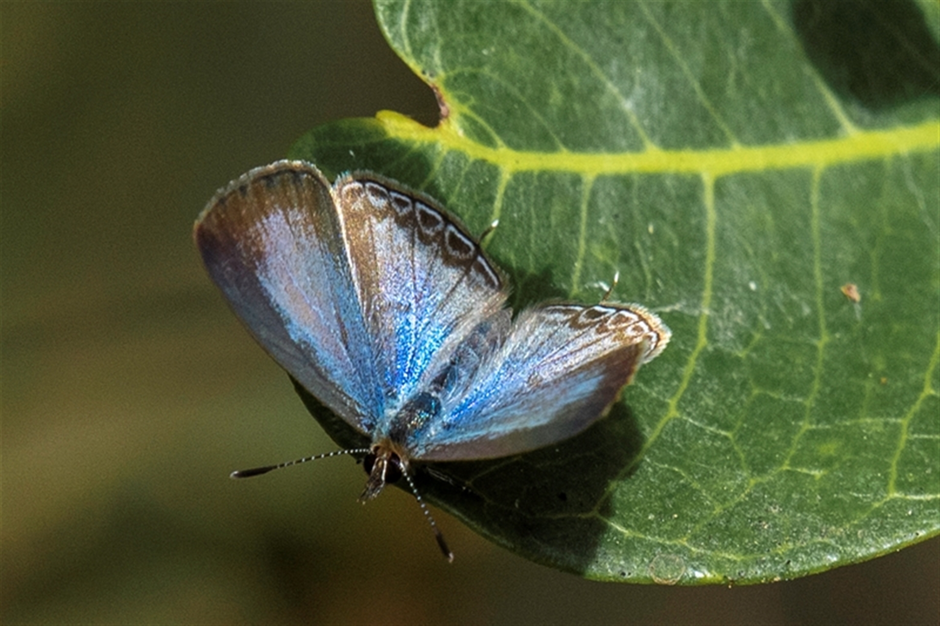On flat leaved plants along a sandy forsehore backed by Mangroves. Quite a few "Blues" seen, very active, hard to say if they are all the same species