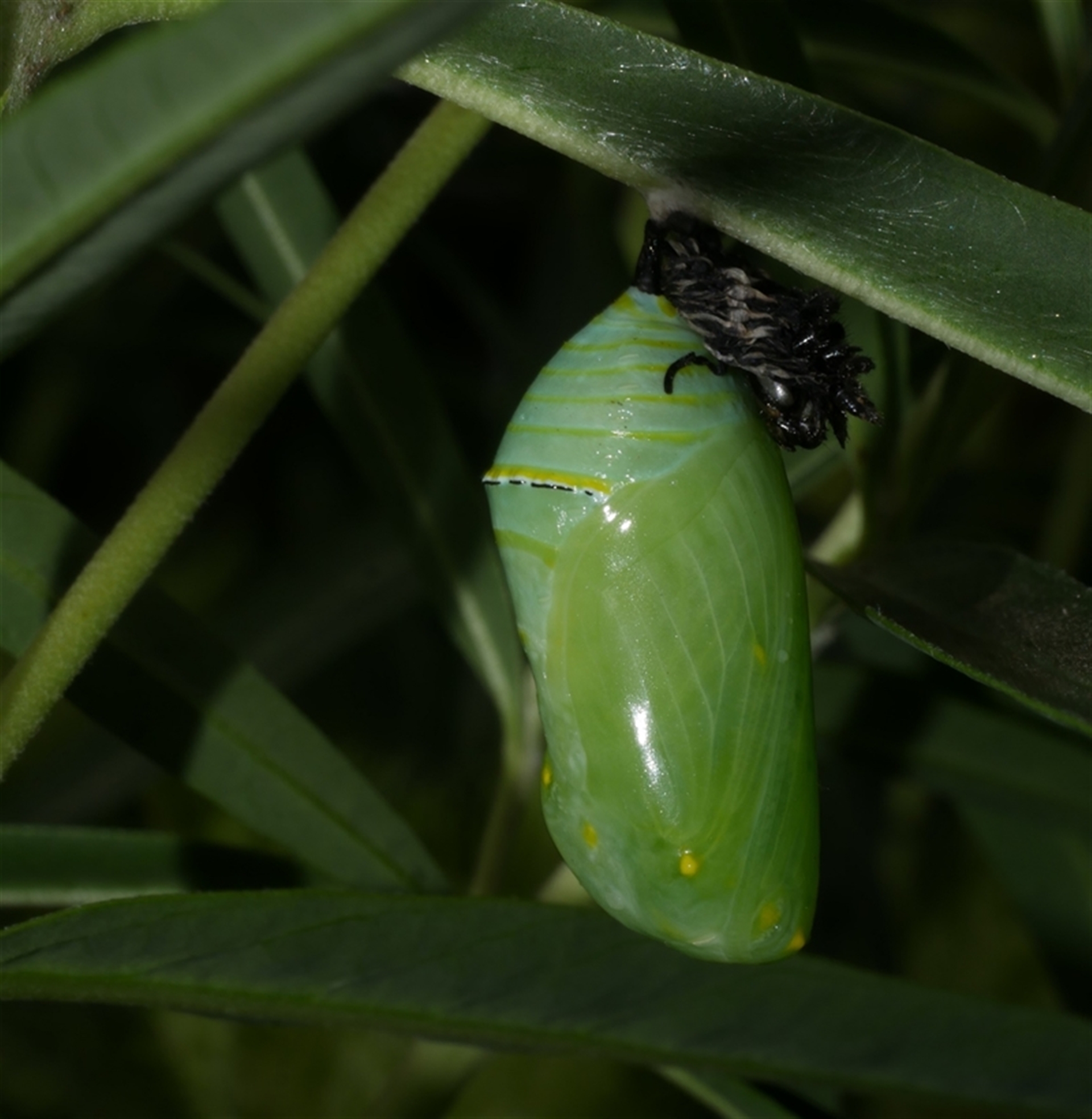 very new pupa - larval skin at top