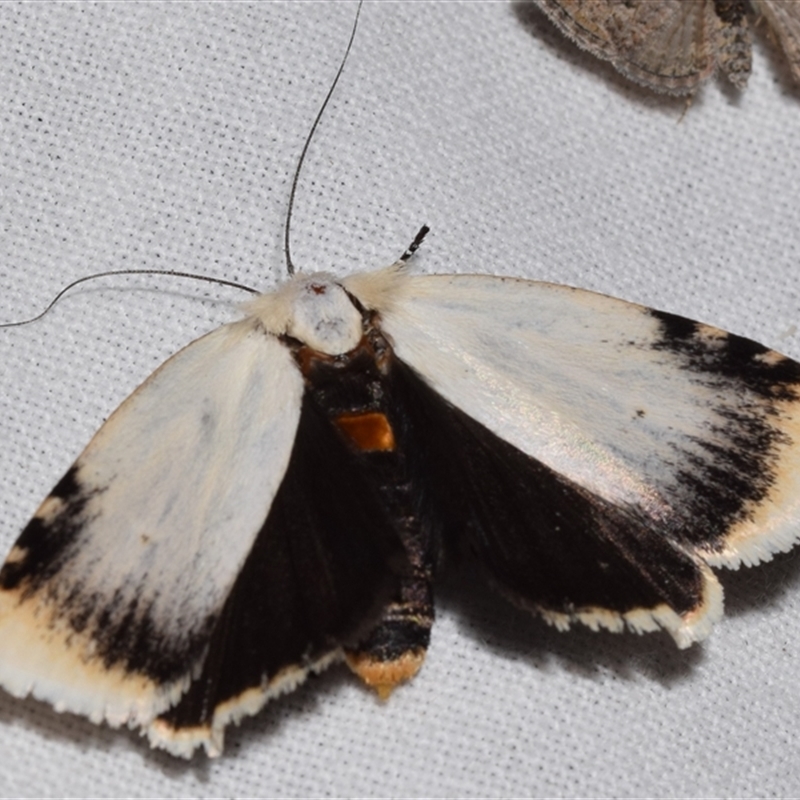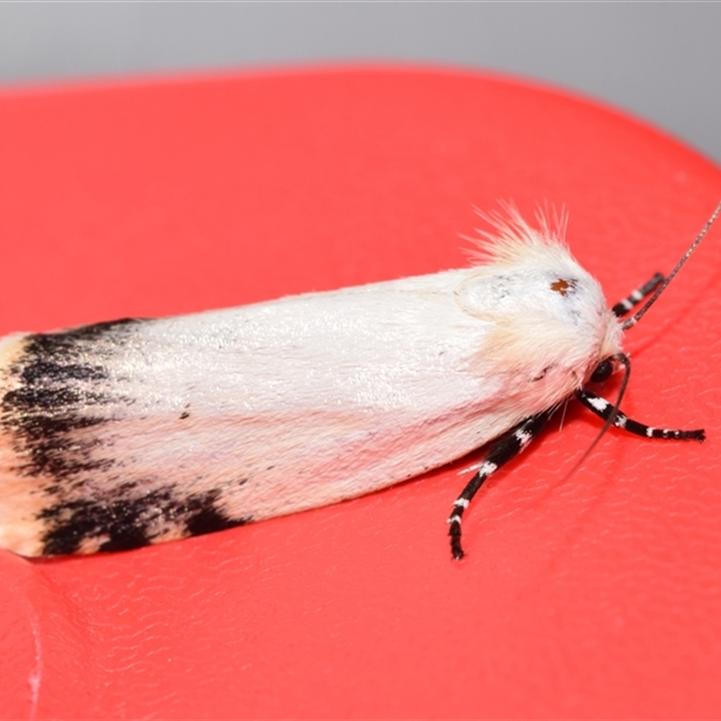 View of the grey hindwing with a whitish inner margin.