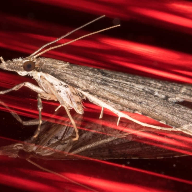 View of the grey hindwing with a whitish inner margin.