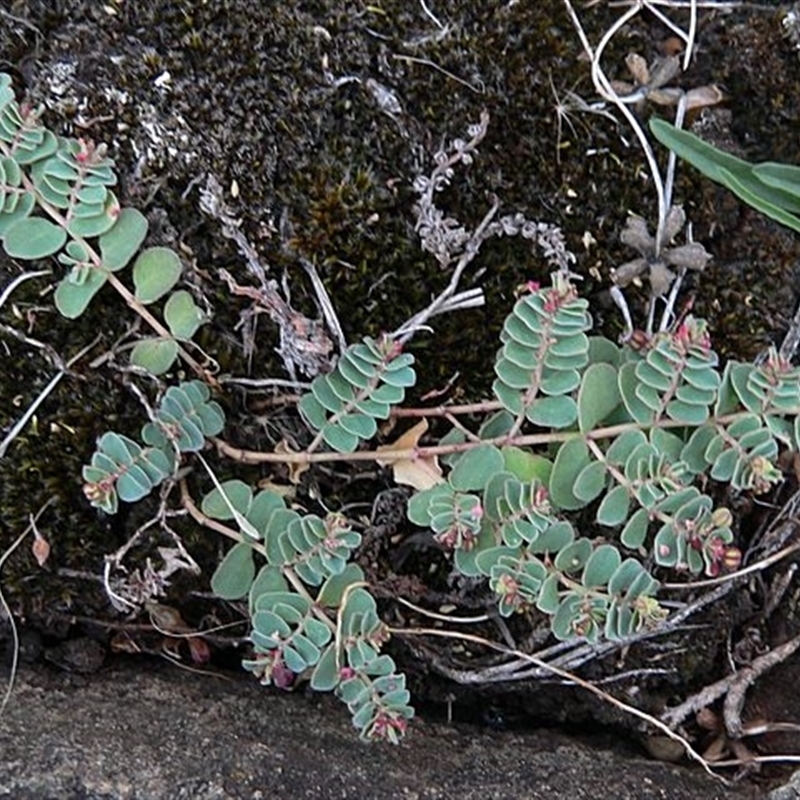 Jackie Miles, on R, native Leucopogon seedling on L