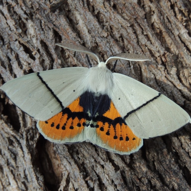 View of the grey hindwing with a whitish inner margin.
